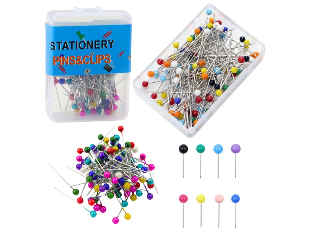 Celá sada je zabalena v praktické, průhledné krabičce pro snadné skladování a přepravu, která chrání špendlíky před ztrátou a vysypáním.