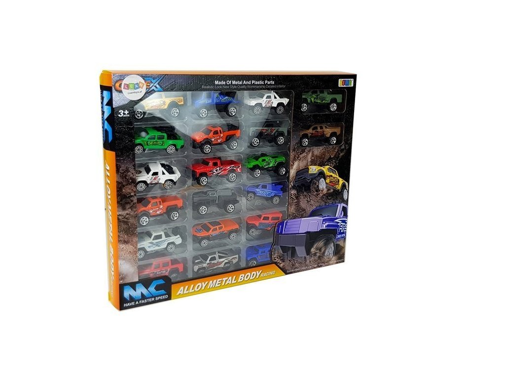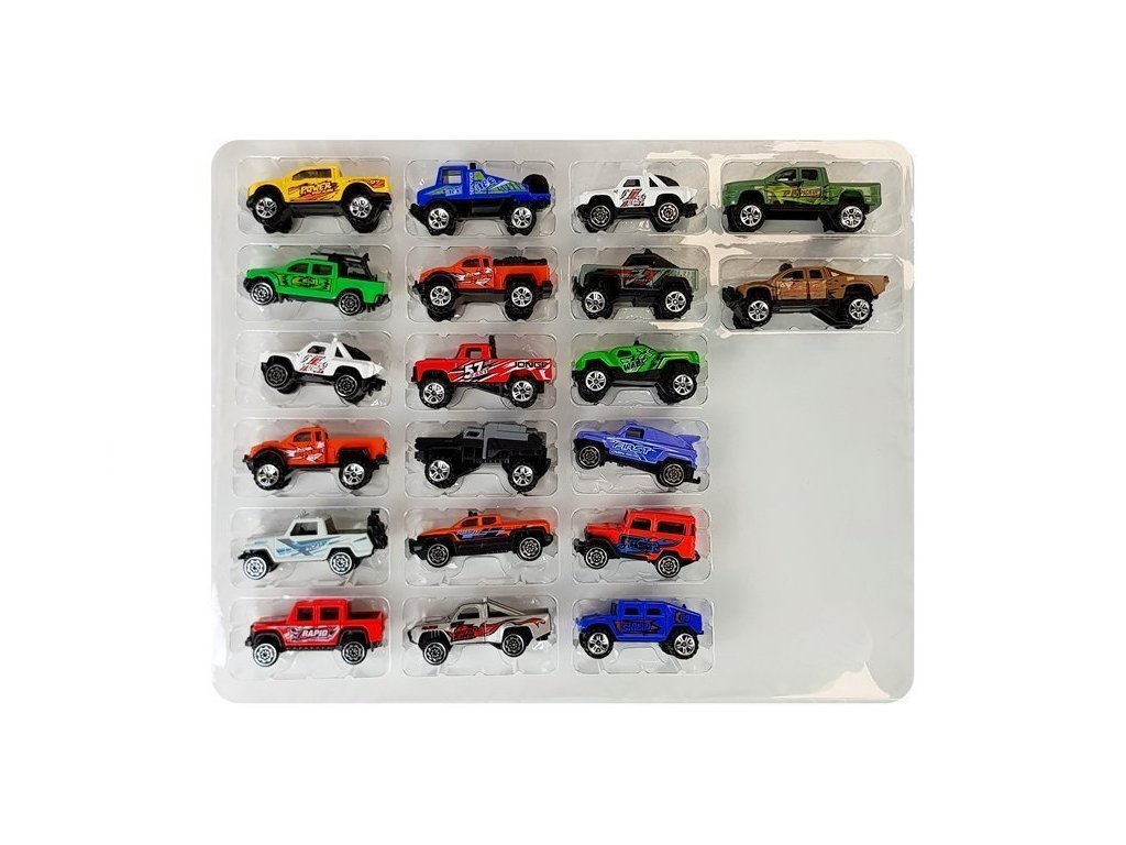 Do sbírky automobilového fanouška přibude mnoho terénních aut a džípů. Budete moci vytvářet extrémní překážkové dráhy pro auta. Každý detail je vyroben s nejmenším detailem a přesností. Sada obsahuje 20 aut, každé je individuální, v jiné barvě a s jiným vzhledem.