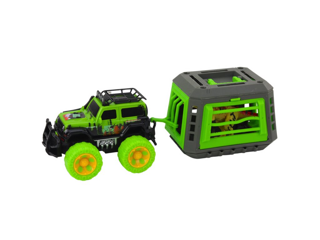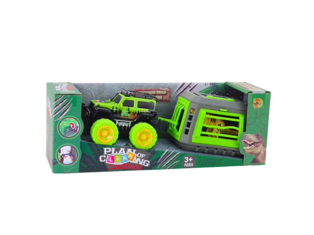 Sada terénního auta s dinosaurem T-Rex a klecí