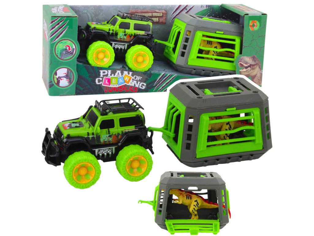 Terénní auto s klecí a dinosaurem je poutavá hračka, která vezme dítě do světa dobrodružství a pravěkých výprav. Ve stylu terénního vozidla s velkými barevnými koly vypadá připravený na jakoukoli záchrannou misi nebo výpravu za dinosaury. V zadní části vozidla je klec s hrozivě vyhlížejícím plazem - připravená k převozu na bezpečné místo.