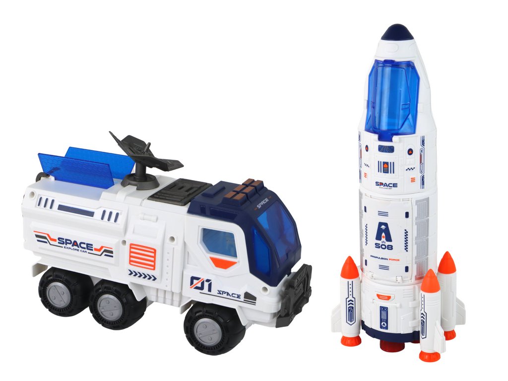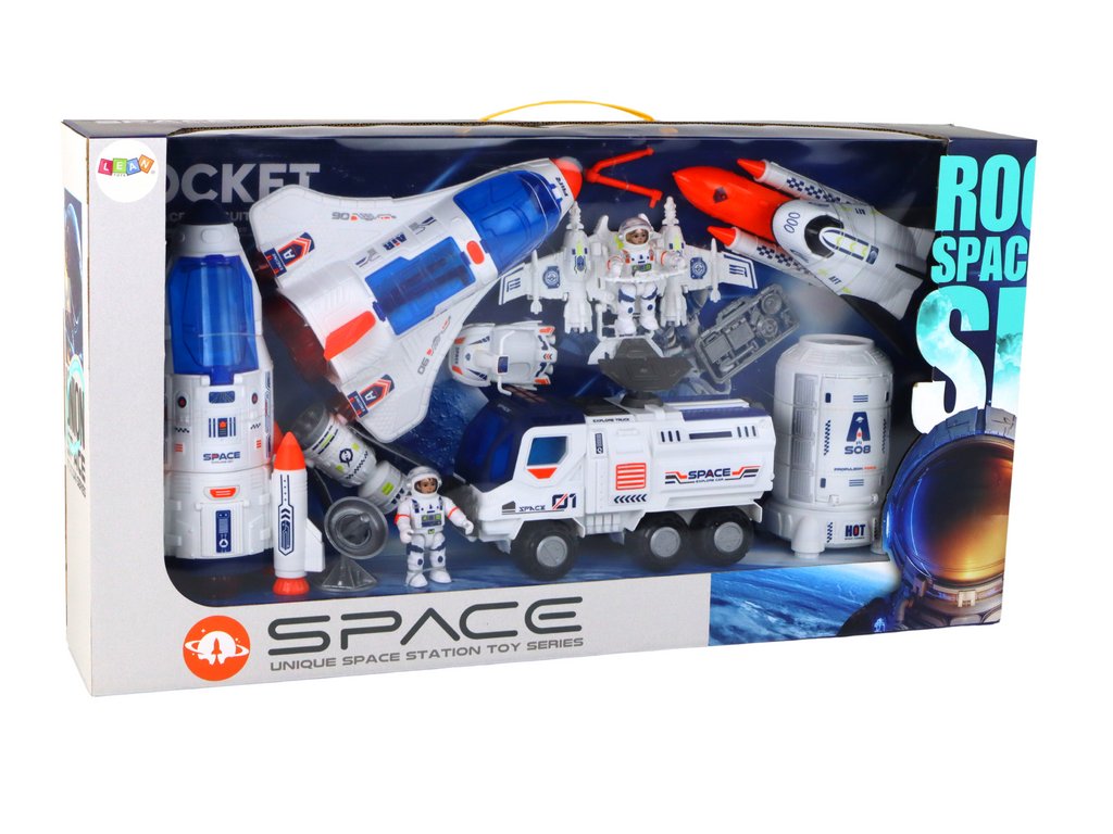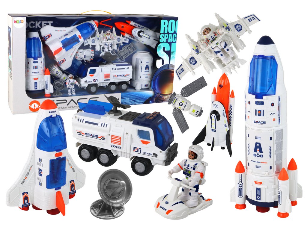 Ústředním bodem sestavy je velká vesmírná raketa v bílé a modré barvě. Má precizně zpracované detaily, včetně raketových motorů, vstupních dveří a oken kabiny. V horní části rakety je kosmická loď připevněná pomocí konektorů. Kosmická loď je také bílá a modrá a má otevírací kabinu pro kosmonauty.