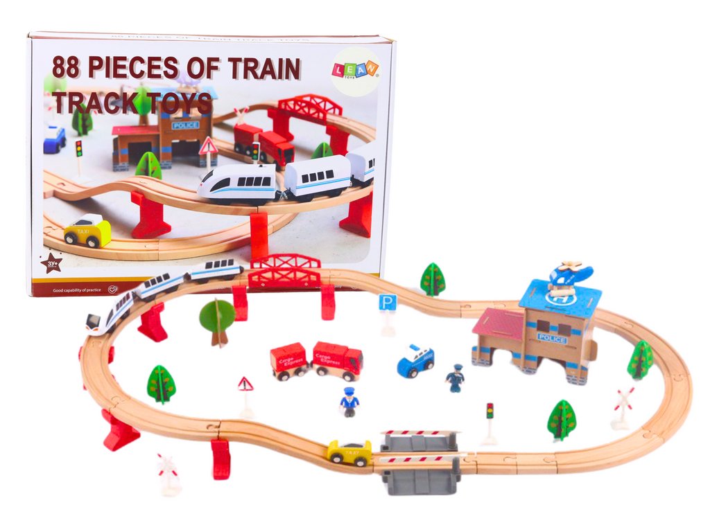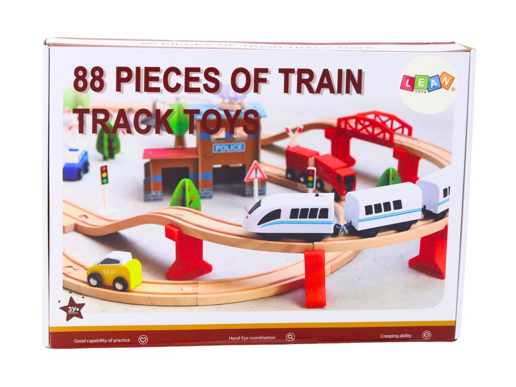 Dřevěná železnice složená z 88 prvků je skvělá hračka, která poskytne mnoho hodin kreativní hry a vzdělávání. Sada obsahuje dřevěné koleje, které lze spojovat v různých kombinacích a vytvářet tak jedinečné a složité trasy. Děti mohou experimentovat s rozložením kolejí a stavět dlouhé, klikaté železniční tratě, které umožní vlakům projet celým městem.