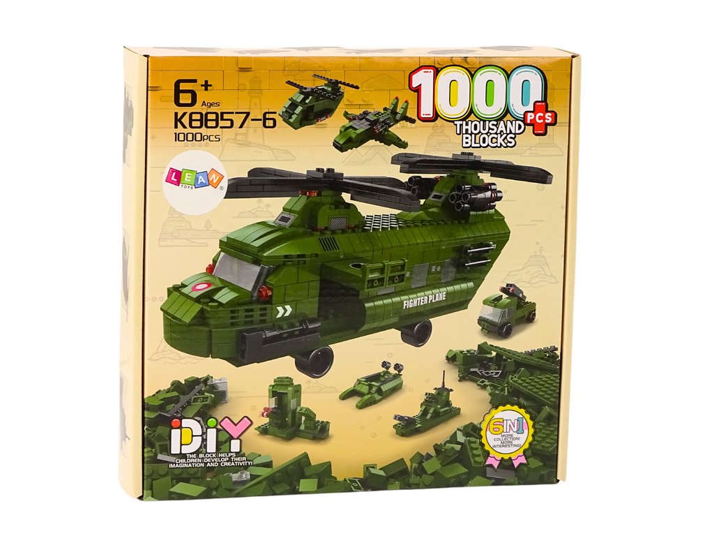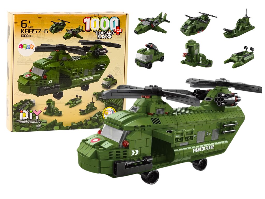 Velká zelená vojenská helikoptéra je ústředním prvkem této působivé sady kostek, která se skládá až z 1000 prvků. Díky své velikosti a působivým detailům je nejen fascinujícím modelem k sestavení, ale také skvělou ozdobou pokoje každého nadšence do vojenské techniky.