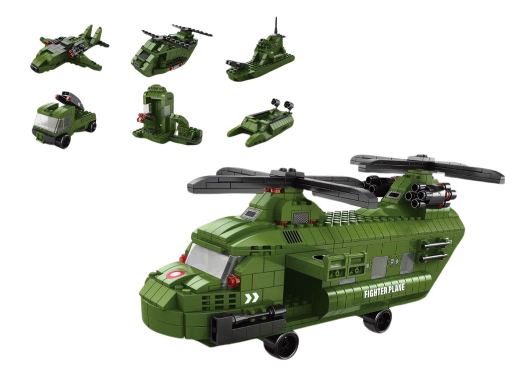 Kromě hlavního vrtulníku nabízí tato sada také možnost postavit si šest dalších menších vojenských strojů. Každý z těchto strojů je samostatným výrazným prvkem, který přidává k zábavě ještě více vzrušení. Loď, stíhačka, katapult, ponorka, nákladní auto a menší vrtulník - to je nepřeberné množství možností, které vám umožní ztvárnit dynamické scény vojenských akcí.