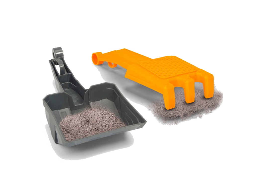 Každé staveniště na pískovišti potřebuje šikovného stavitele s přilbou, hráběmi, sadou strojů a sklápěčkou, která dokáže překonat náročný terén a dopravit písek ze stavby. Kromě toho má vozidlo pohyblivé zadní dveře, které pomáhají s odstraňováním písku. S touto sadou se hřiště stane dětským staveništěm!