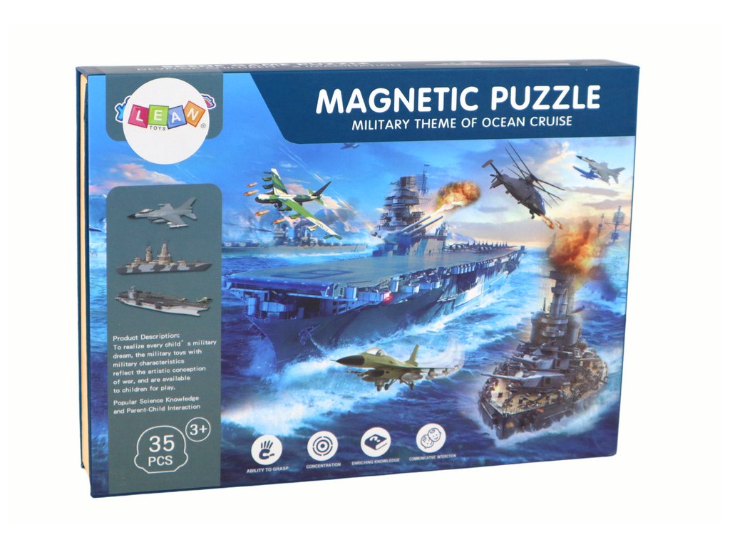 Představujeme fascinující sadu magnetických hlavolamů, které děti zavedou do světa vojenských lodí na oceánu. Toto je perfektní nabídka pro malé vojenské nadšence, kteří chtějí objevovat námořní dobrodružství a vojenské operace.