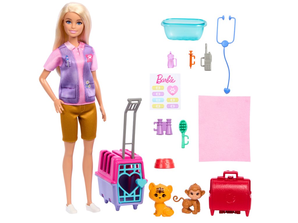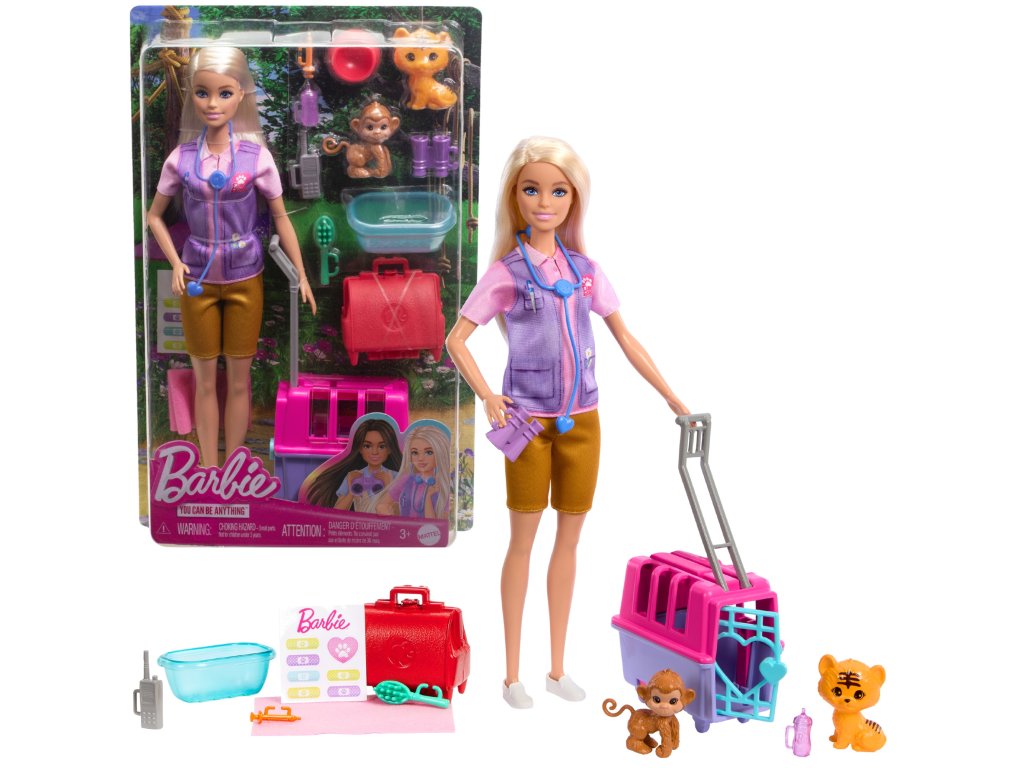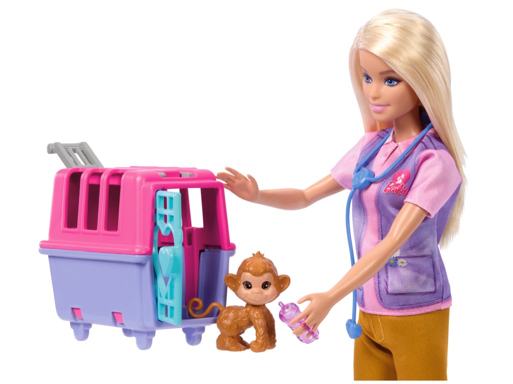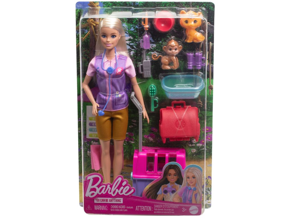 Vydejte se s Barbie na vzrušující záchrannou misi do srdce džungle! Sada Barbie Animal Rescue ze série Career je ideální nabídkou pro děti, které sní o pomoci zvířatům a objevování fascinujícího světa divoké zvěře. Sada obsahuje nejen panenku Barbie - půvabnou blondýnku v outfitu připraveném na výzvy v terénu - ale také dvě okouzlující figurky zvířat: malého tygra a sladké opice. Dodávané příslušenství vám umožní zahrát si veterinární péči a přepravu zvířat realistickým způsobem.