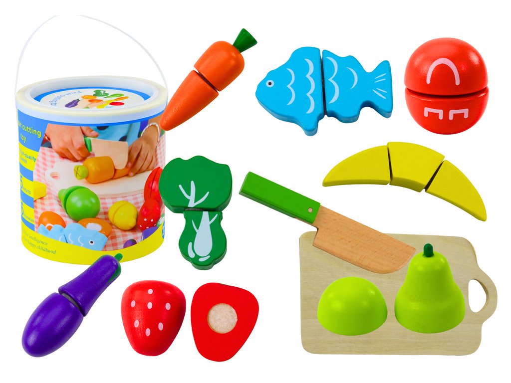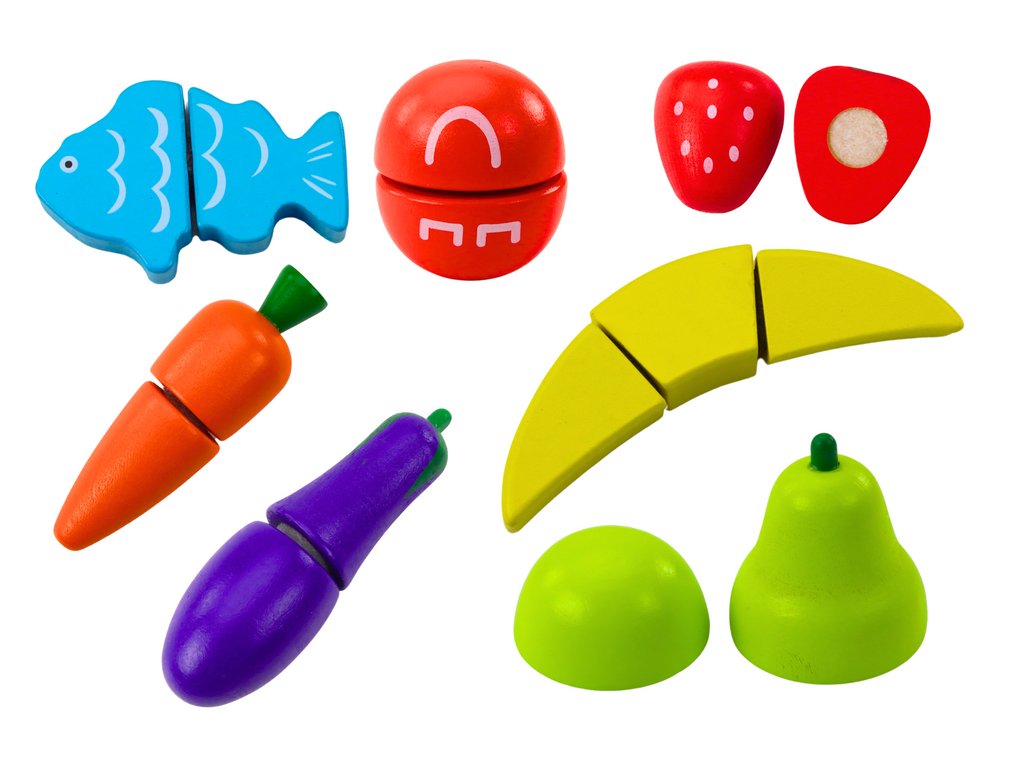 Sada zeleniny a ovoce ke krájení je všestranná a vzdělávací hračka určená k rozvoji manuální zručnosti a kreativity dětí. Sada obsahuje 5 různých druhů ovoce a 6 druhů zeleniny, které jsou vyrobeny ze dřeva. Každé ovoce a zelenina jsou pečlivě reprodukovány s důrazem na detail, aby co nejvíce připomínaly skutečné potraviny.