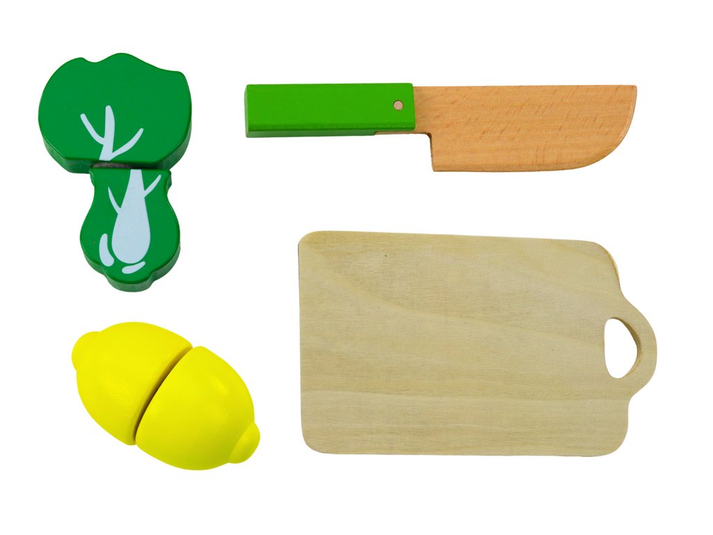 Sada obsahuje také bezpečný dřevěný nůž, který je speciálně navržen tak, aby byl bezpečný pro malé děti. Součástí sady je také dřevěné prkénko na krájení, které dodává dětem realističnost a umožňuje jim napodobovat dospělé při přípravě pokrmů.