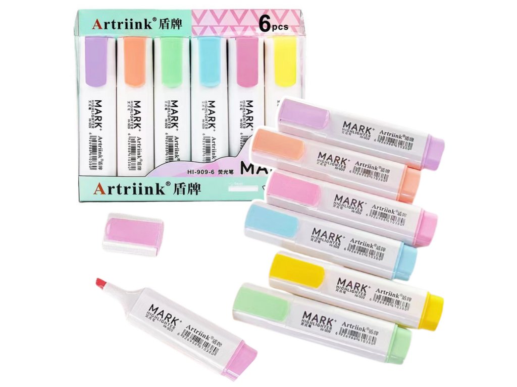 Sada zvýrazňovačů fixů do školy a kanceláře pastelové 6 ks