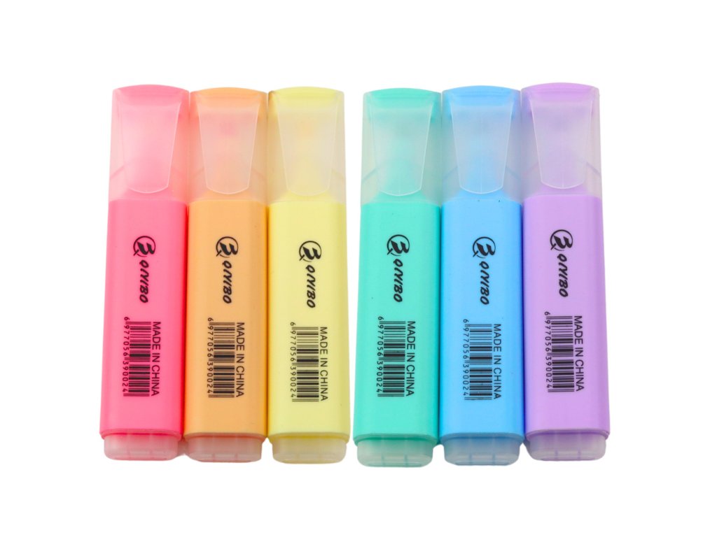 Sada zvýrazňovačů v pastelových odstínech je nenahraditelnou pomůckou každého žáka, studenta i kancelářského pracovníka. Jemné, oku lahodící barvy zajišťují pohodlí při práci s textem a umožňují přehledné označení nejdůležitějších informací. Zvýrazňovače se vyznačují pohodlným úchopem a praktickou špičkou, která umožňuje přesné podtržení a široké značení – to vše v závislosti na úhlu sklonu.