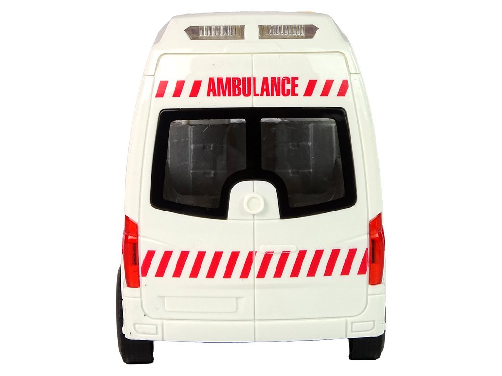 Rozkošná bílá sanitka s třecím pohonem je fascinující hračka - běží na baterie a má 4 barevná tlačítka, z nichž každé aktivuje jiný zvuk. Děti budou milovat, když budou moci otevírat dveře a vidět dovnitř vozidla, stejně jako rozsvěcovat světla, což hře dodává na realističnosti.