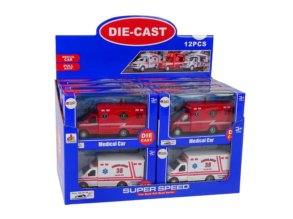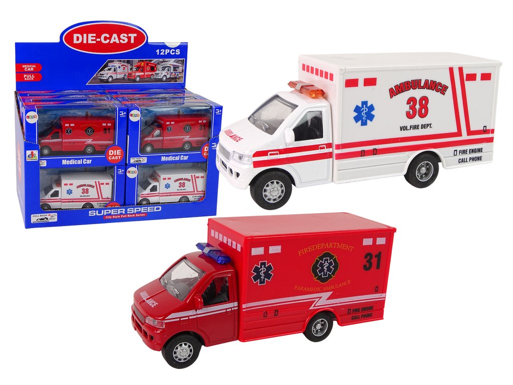 Sada obsahuje dvě barvy sanitky. Najdete tu červenou a bílou sanitku. Všechny modely mají výrazné samolepky a nápisy, které bez problému pozná každé batole. Vozidlo má třecí pohon, stačí zatáhnout a pustit a sledovat, jak se řítí vpřed.