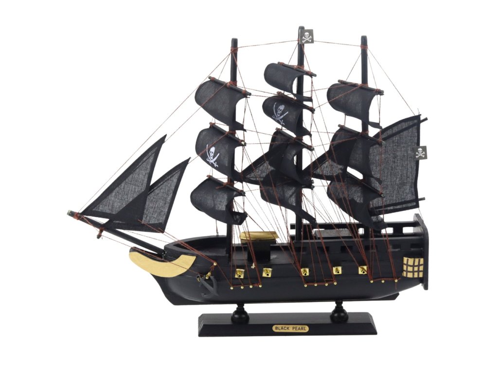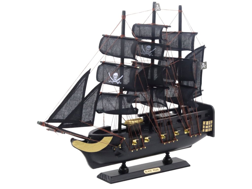 Model byl vytvořen s pečlivou pozorností k detailu – od stylizované paluby, přes okna na zádi až po zlaté ozdobné prvky po stranách. Černozlaté barevné schéma a elegantní linie trupu zdůrazňují charakter lodi. Model stojí na pevném podstavci s plaketou „BLACK PEARL“, což z něj dělá výrazný dekorativní prvek. Jeho výrazný design z něj dělá skvělý samostatný model nebo součást kolekce. Je to perfektní volba pro fanoušky pirátství, námořní historie a tématického modelování.