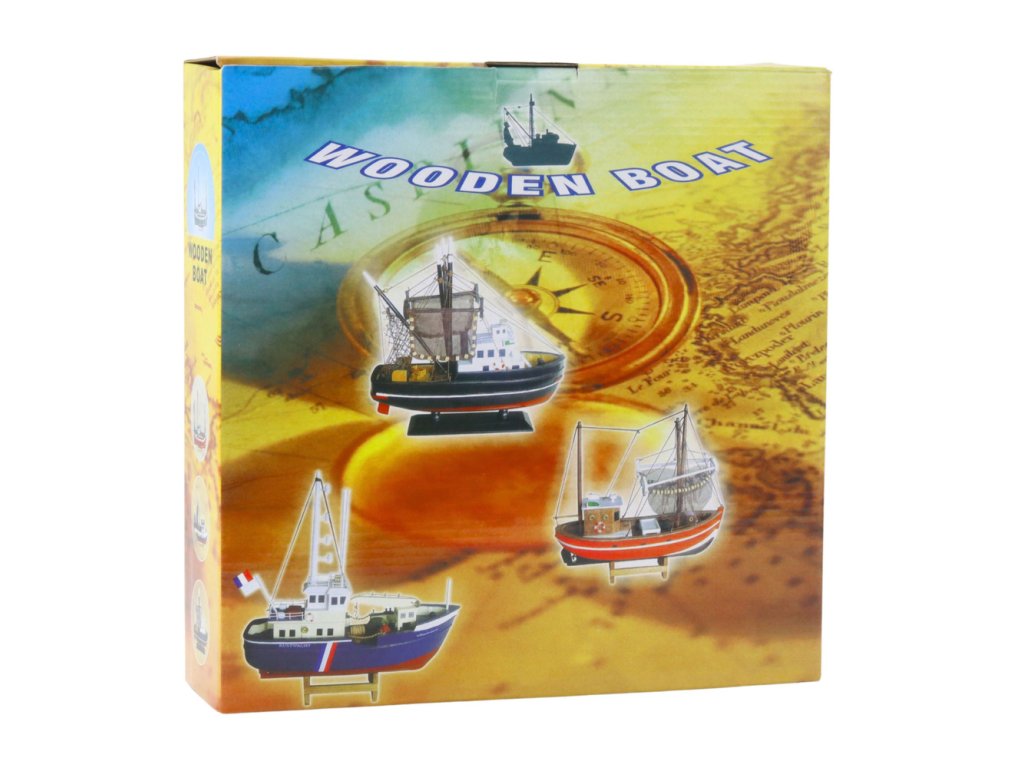 Tato dřevěná rybářská loď je pečlivě zpracovaný sběratelský model v klasickém námořním stylu. Design kopíruje tradiční rybářskou loď, doplněnou o detaily, jako jsou stěžně, sítě, lana a prvky paluby. Díky své ruční povrchové úpravě a pečlivé pozornosti k detailu vypadá model neuvěřitelně autenticky a přitáhne pozornost milovníků námořní estetiky.