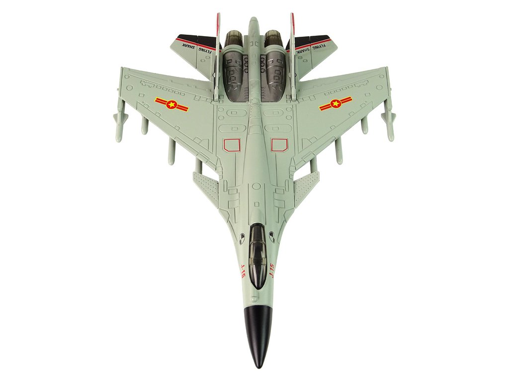 Vyrábí se v elegantní šedé barvě, která mu dodává autentický vzhled, podobný skutečné stíhačce. Jeho úžasný vzhled může potěšit děti i dospělé. Má gumová kolečka, která mu umožňují hladký pohyb na různých površích.