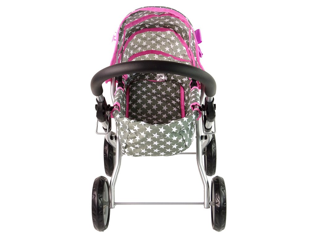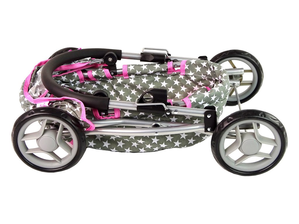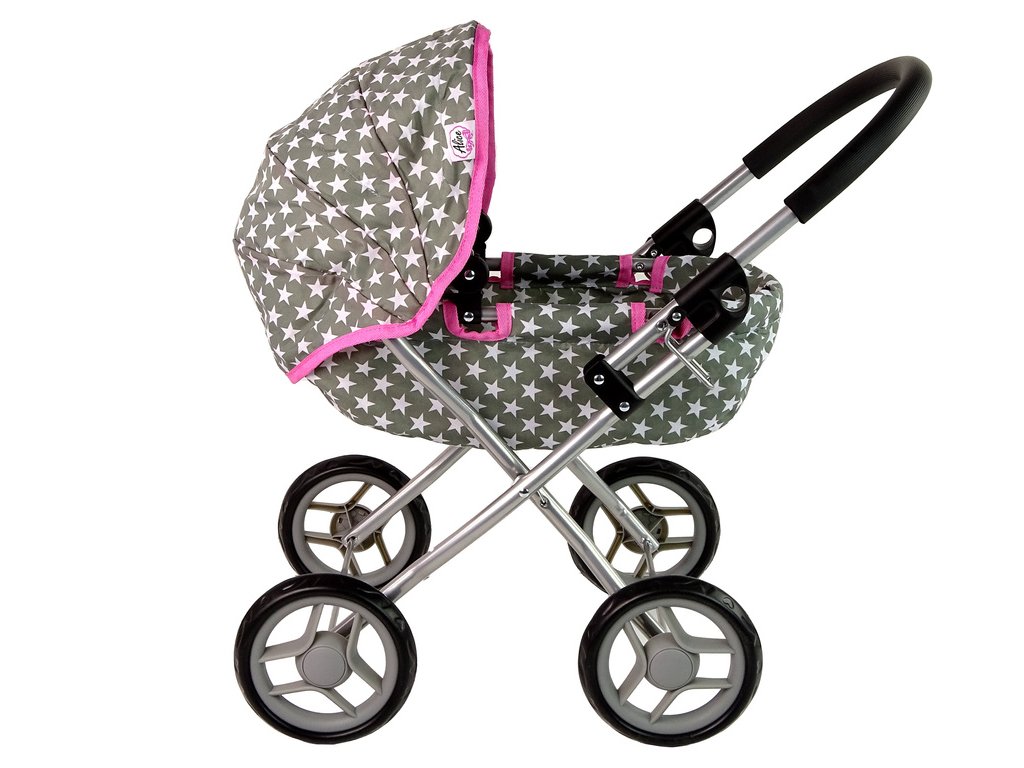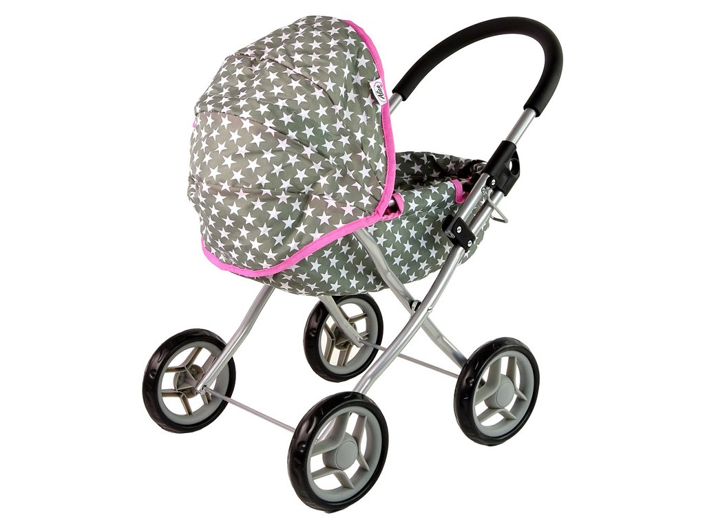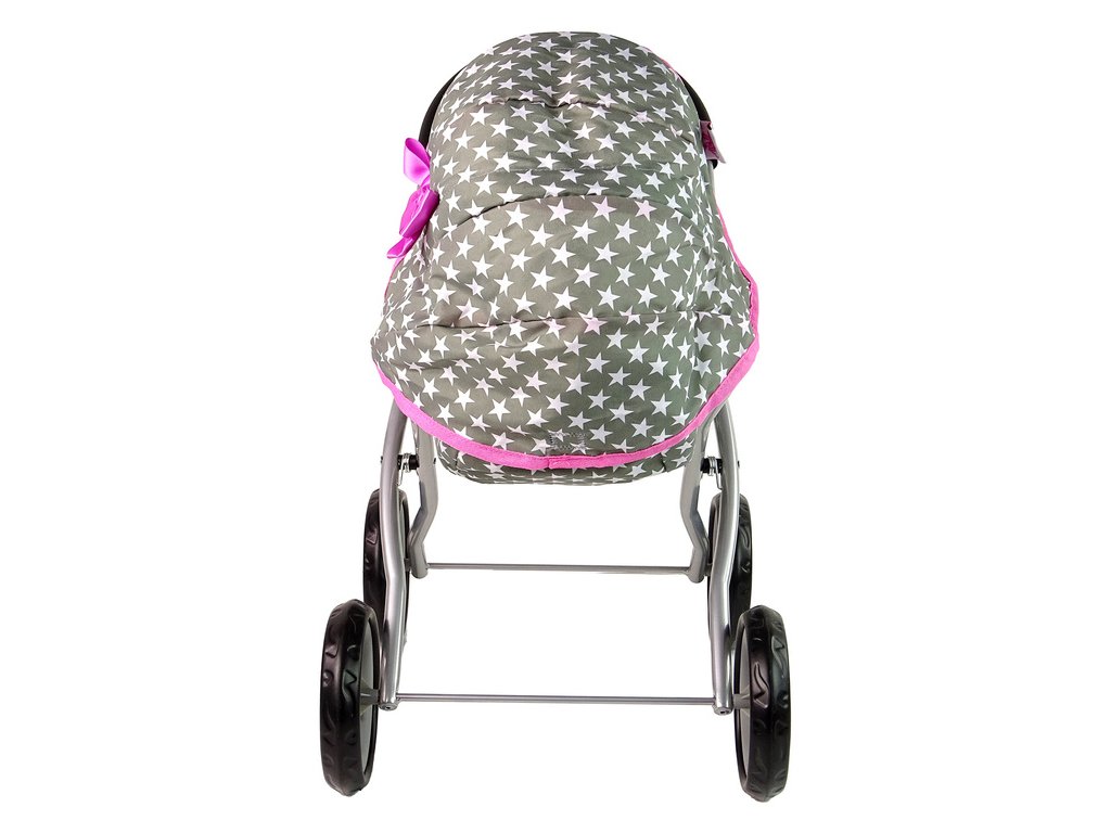 Šedý kočárek pro panenky s bílými hvězdami