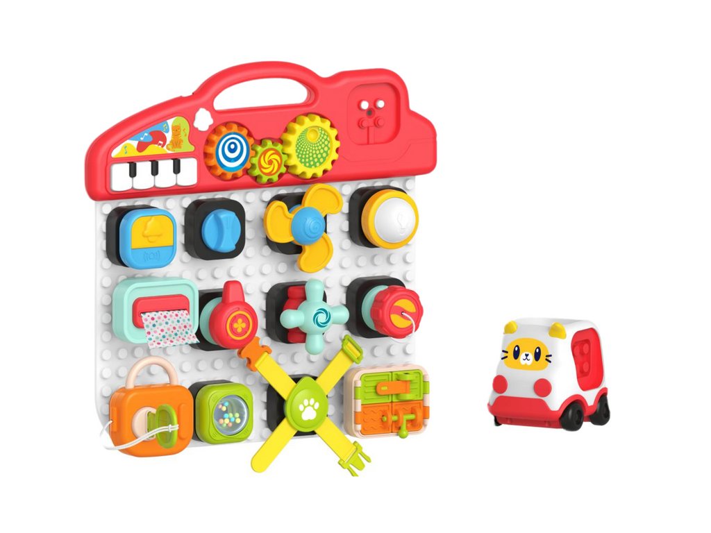 Tento senzorický panel je ideální pomůckou pro hraní doma, ve školce nebo při cestování. Je to ideální dárek pro každé batole, které si jistě zamiluje rozmanitost prvků a možností, které tato hračka nabízí.