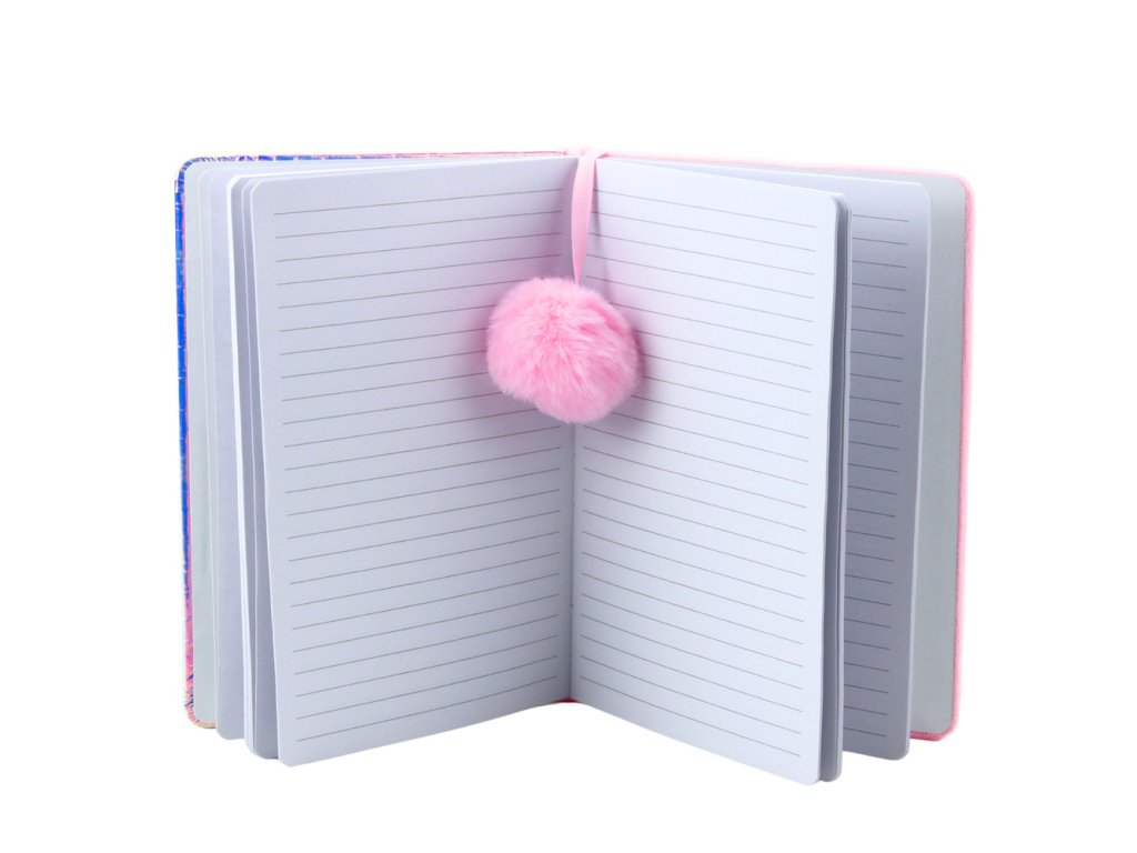 Tento jedinečný zápisník s 3D efektem přitahuje pozornost a podněcuje fantazii. Přední obálku zdobí třpytivý růžový jednorožec zasazený na holografickém pozadí vyplněném pohyblivými konfetami ve tvaru hvězdy. Dalším zvýrazněním je záložka zakončená nadýchanou bambulí, která slouží k dekorativnímu i praktickému účelu.