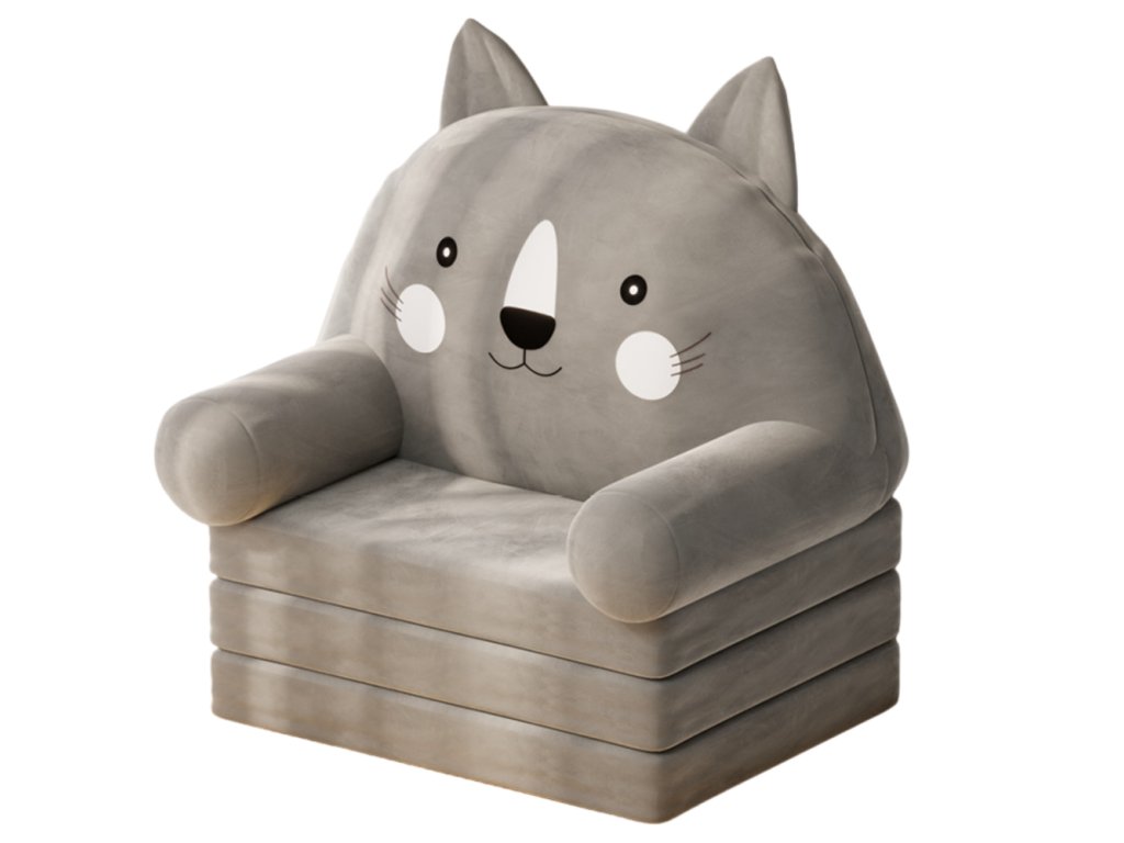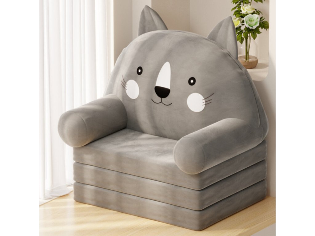 Skládací křeslo pro děti Kočka 3 úrovně Šedé 56x50cm