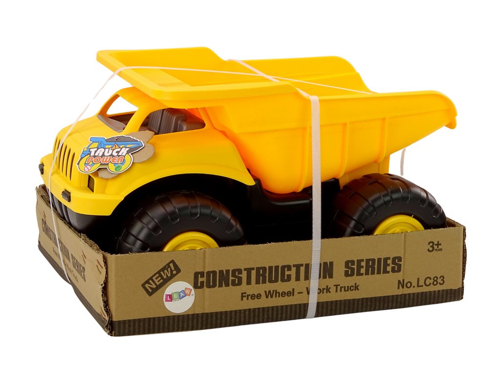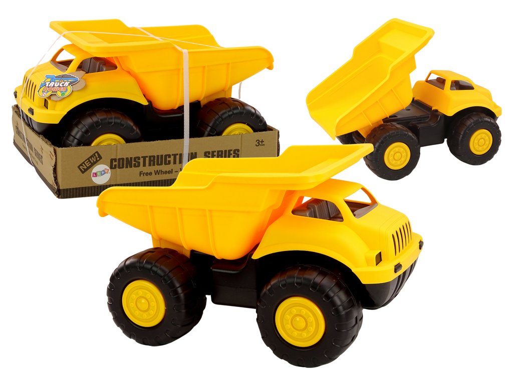 Velké sklápěcí auto pro děti je perfektní hračka, která poskytne dlouhé hodiny kreativní a poutavé zábavy venku i doma. Vozidlo je žluté, což přitahuje pozornost a dodává mu realistický vzhled. Sklápěcí auto je vybaveno velkými černými koly, která zajišťují stabilitu a snadný pohyb po různých površích, jako je tráva, písek nebo koberec.