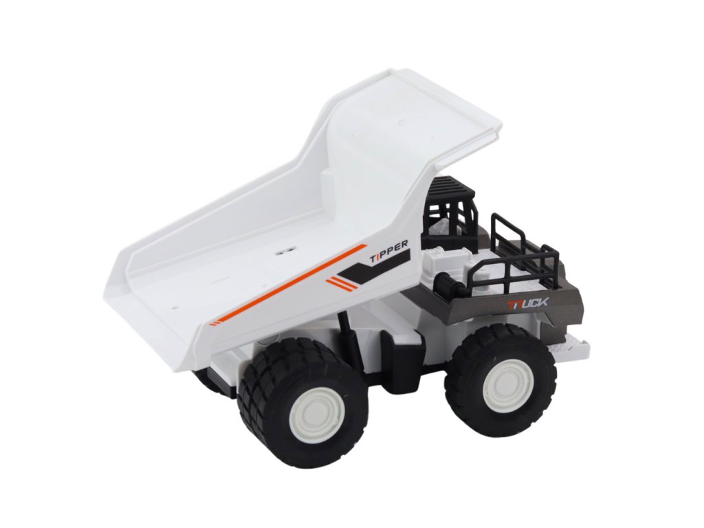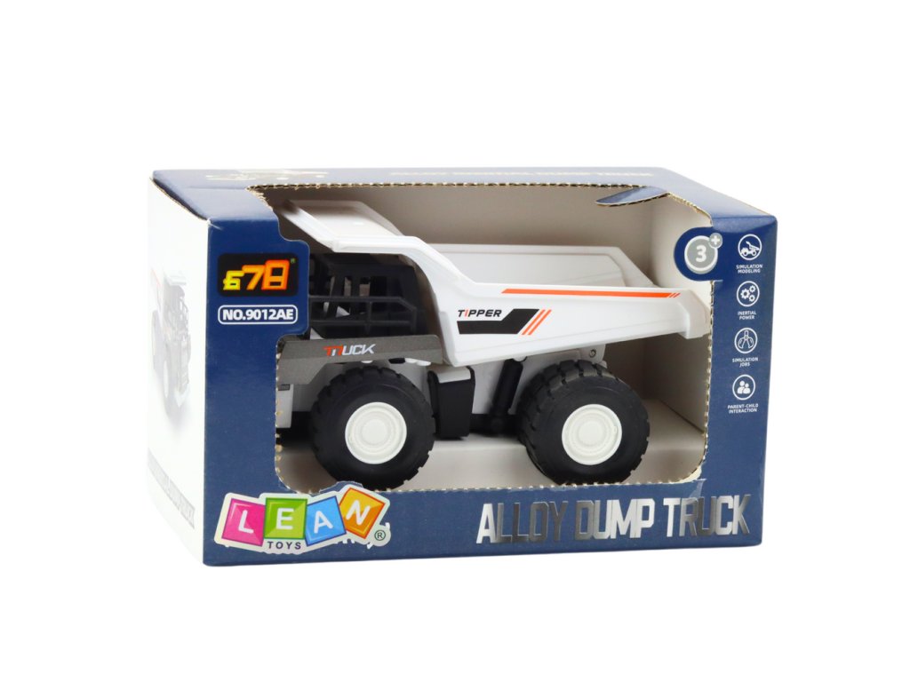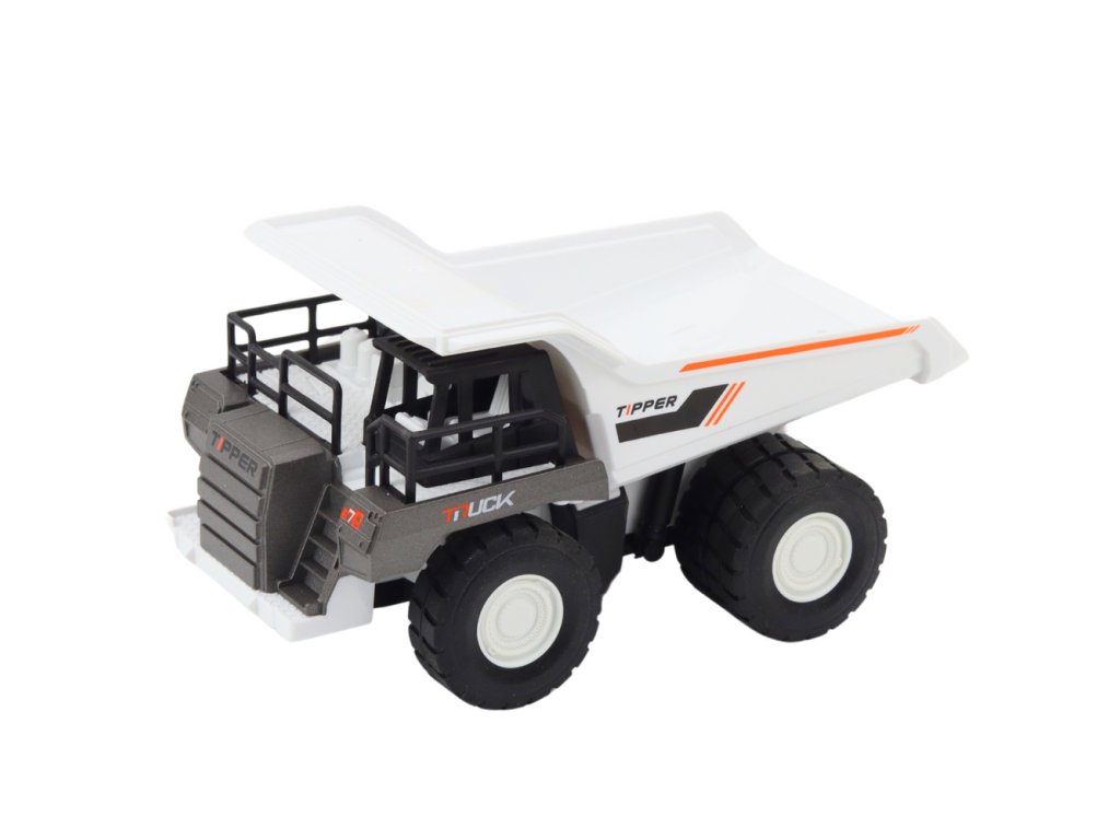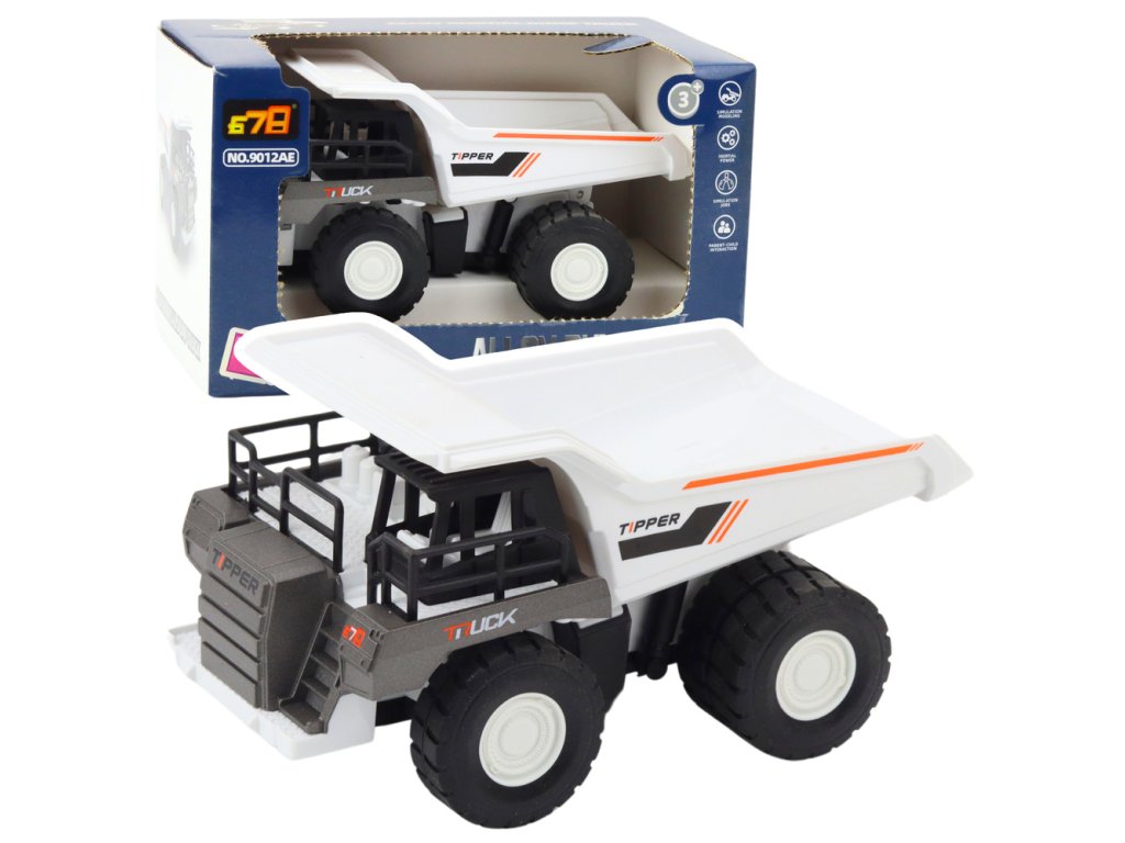 Pevná stavební sklápěčka s pohyblivým nákladním boxem je ideální hračka pro děti, které jsou zapálené pro pracovní stroje a práci na stavbě. Model v bílé a šedé barvě se vyznačuje kovovými prvky, které zvyšují odolnost hračky a zdůrazňují její realistický charakter.
