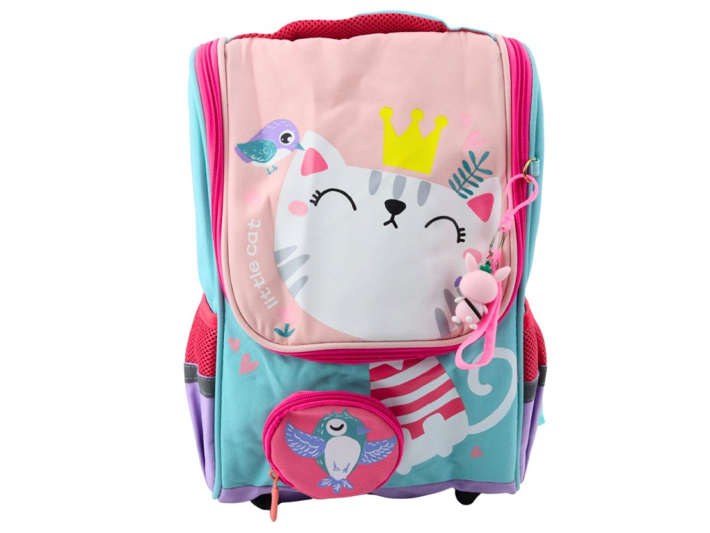 Školní batoh Bílá kočka s ptáčkem Přívěsek 21L