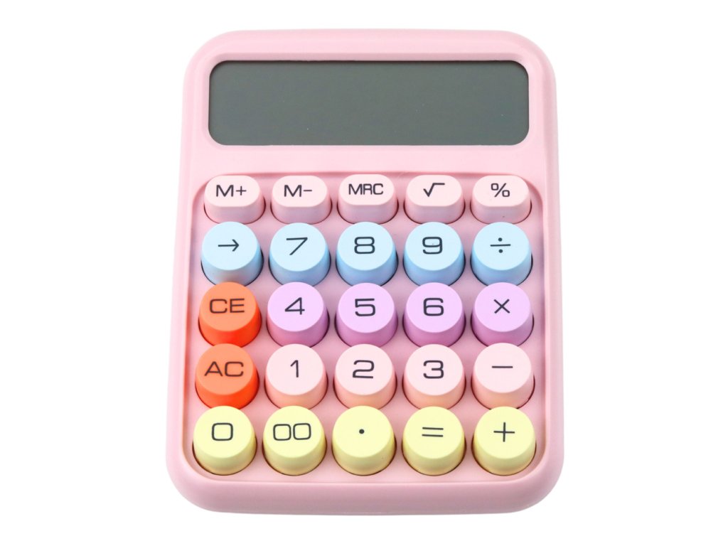 Moderní kancelářská kalkulačka v elegantním růžovém pouzdře je kombinací funkčnosti a atraktivního designu. Vyniká velkým, čitelným displejem a velkými barevnými klávesami, které výrazně usnadňují ovládání. Tlačítka v pastelových barvách - modrá, růžová, žlutá, oranžová - nejen přitahují pozornost, ale také zlepšují komfort používání a umožňují rychlé a intuitivní zadávání dat.