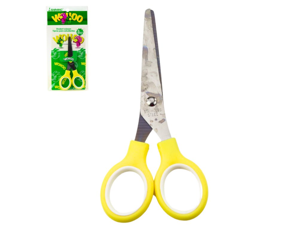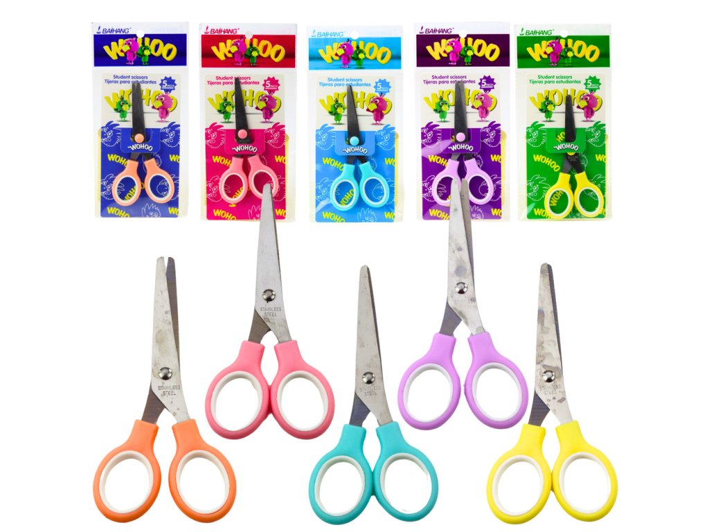 13 cm dlouhé školní nůžky jsou ideální pomůckou pro děti, které se učí stříhat papír doma, ve školce nebo ve škole. Díky oboustrannému designu jsou pohodlné pro praváky i leváky. Zaoblené konce čepelí zajišťují bezpečnost při používání a lehké plastové rukojeti dobře padnou do ruky a povzbuzují děti k samostatné práci.
