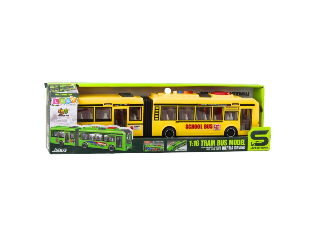 Tento realistický kloubový školní autobus v měřítku 1:16 je jedinečná hračka pro děti, které se zajímají o městská vozidla a chtějí se cítit, jako by řídily skutečný školní autobus. Model je vyroben s důrazem na detail – má skleněná okna, sedadla pro cestující a charakteristickou žlutou barvu školního autobusu. Jeho délka dodává vozidlu skutečně působivý vzhled.