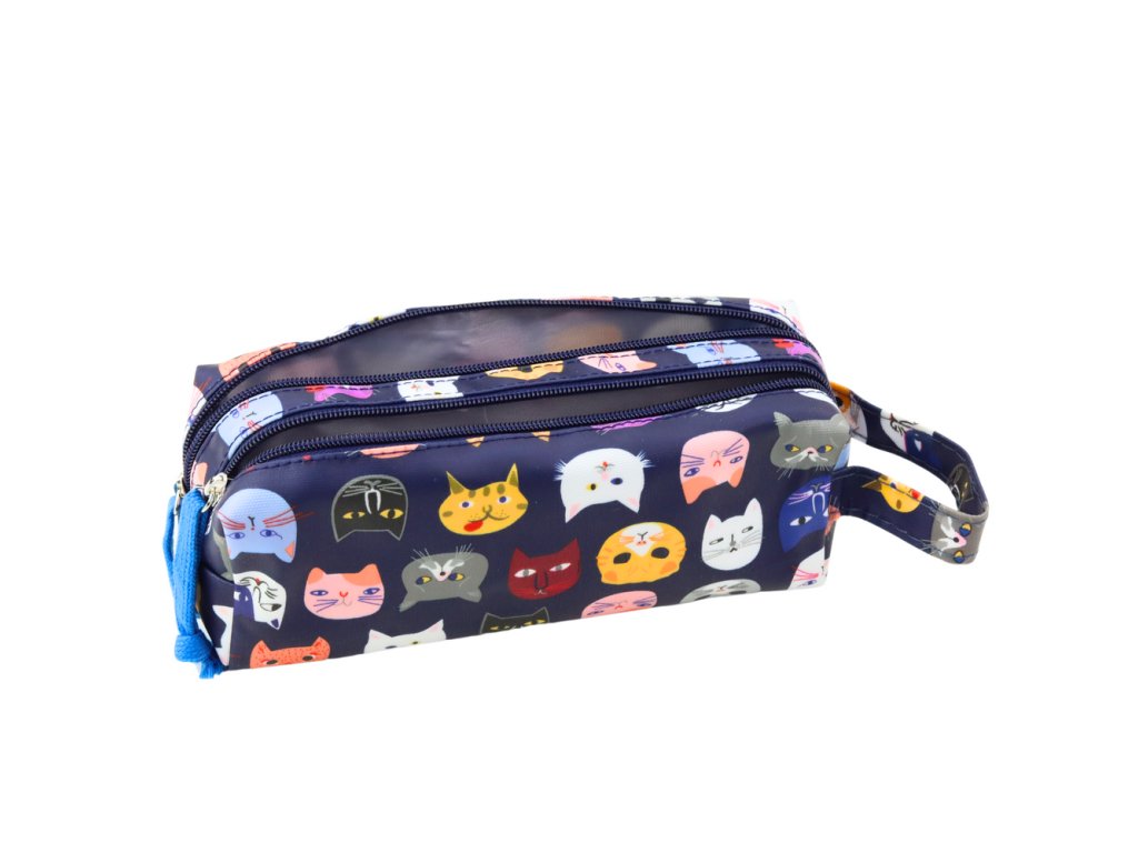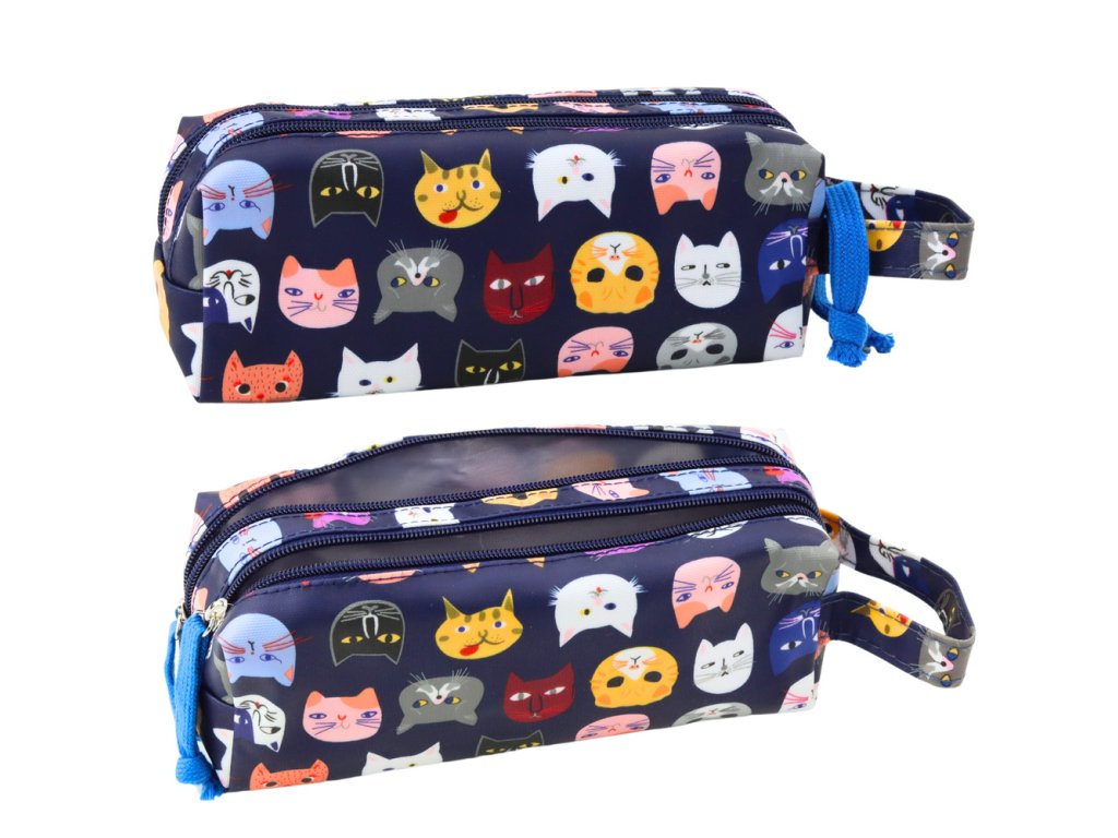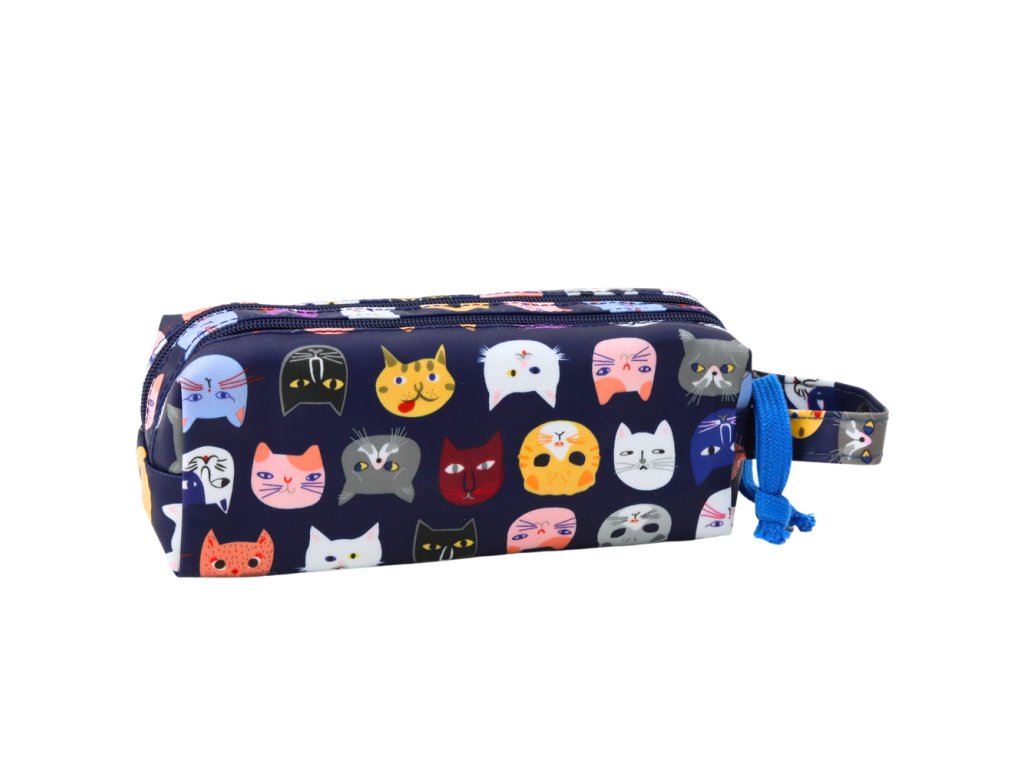 Školní penál Barevní kočky Dvě kapsy Námořnický 22cm