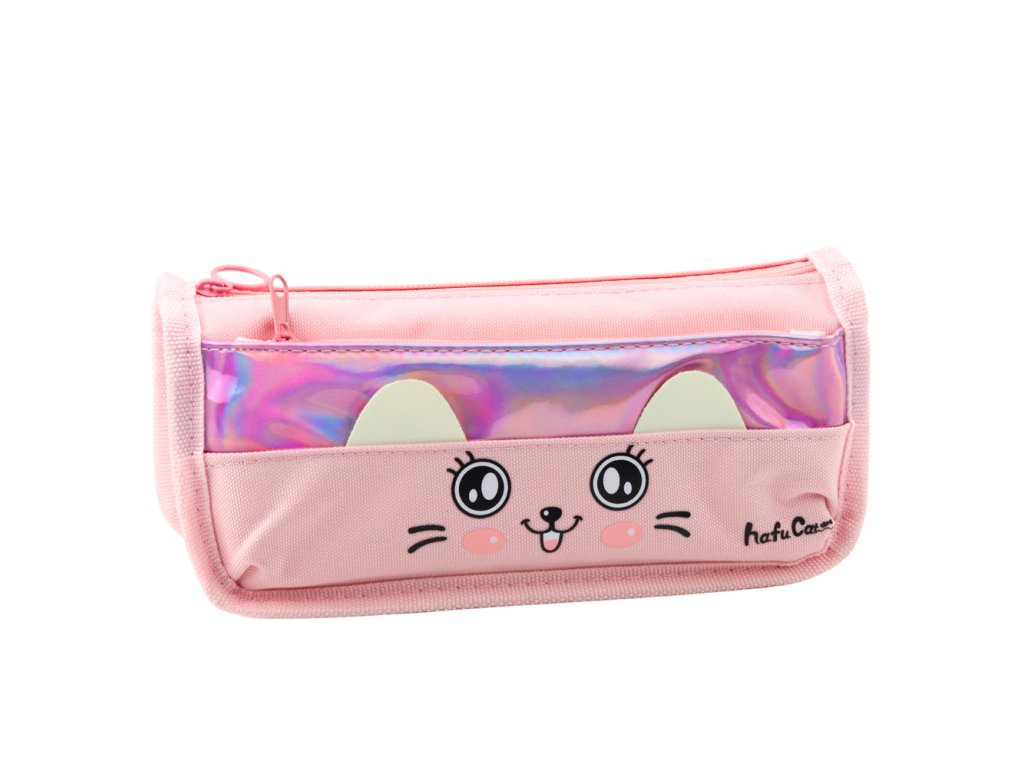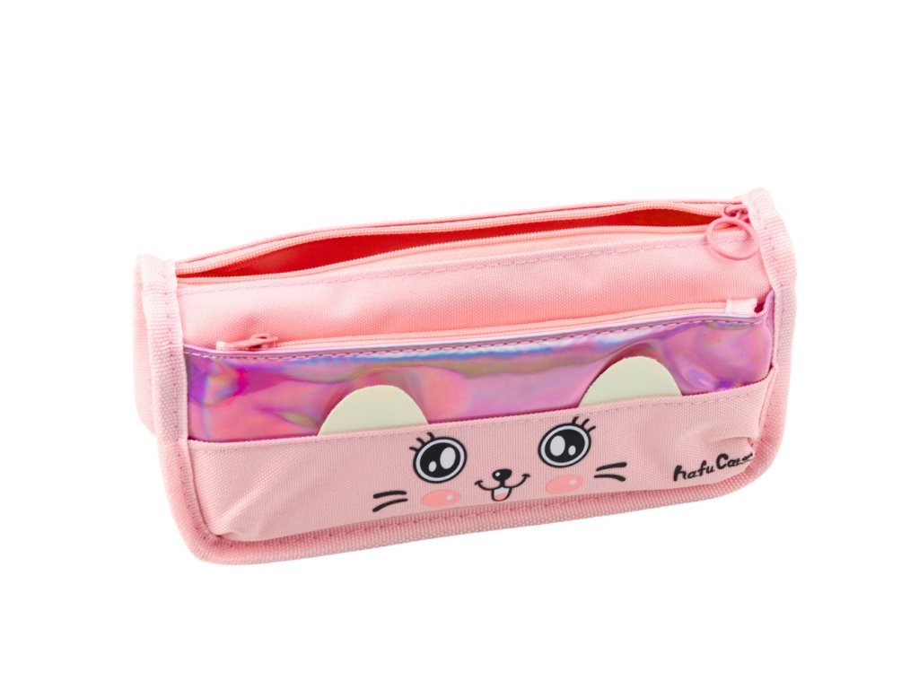 Okouzlující školní penál s motivem kočičího obličeje je funkčním a estetickým doplňkem každého dítěte, který dokonale spojuje praktičnost s jedinečným vzhledem. Vyrobeno v růžové barvě, zdobené charakteristickým kočičím obličejem a průhlednou vsadkou s ušima, přitahuje pozornost a ještě více zpříjemňuje každodenní používání školních pomůcek.