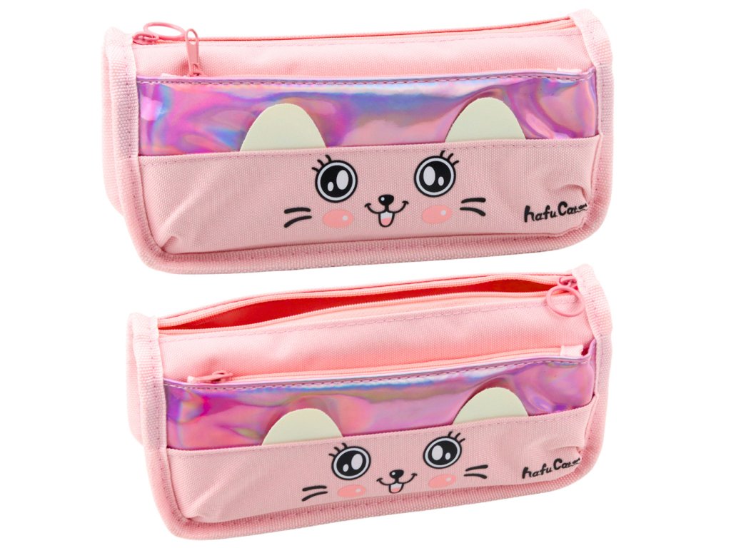 Školní penál Kočka Dvě kapsy Růžový 21.5cm