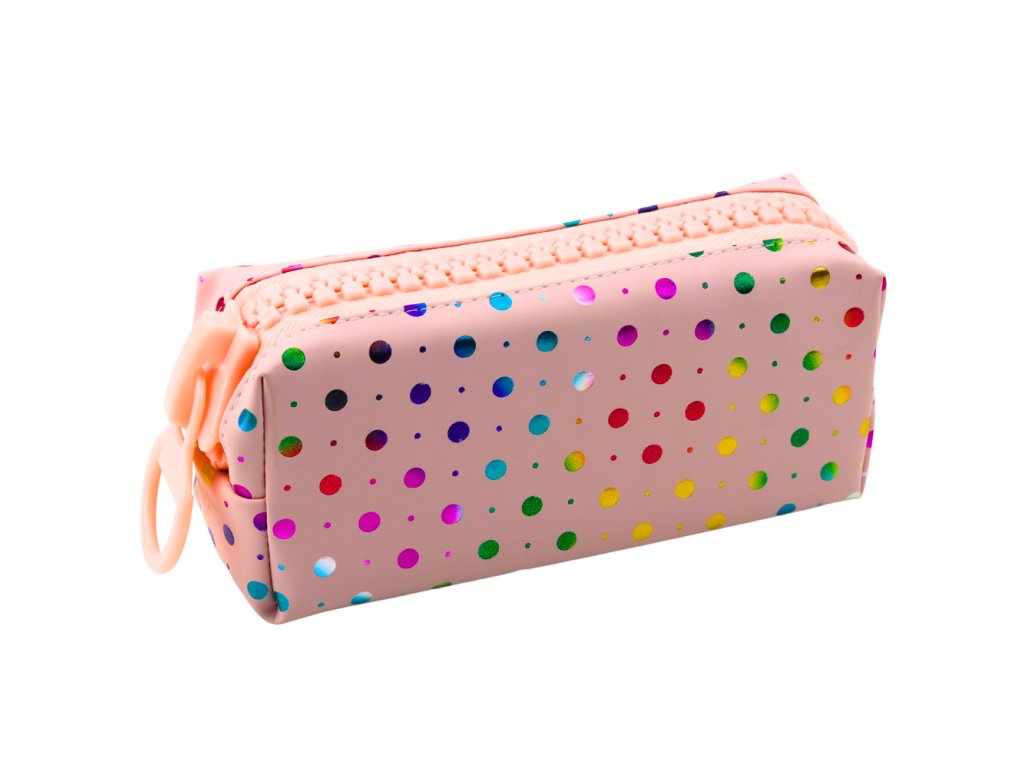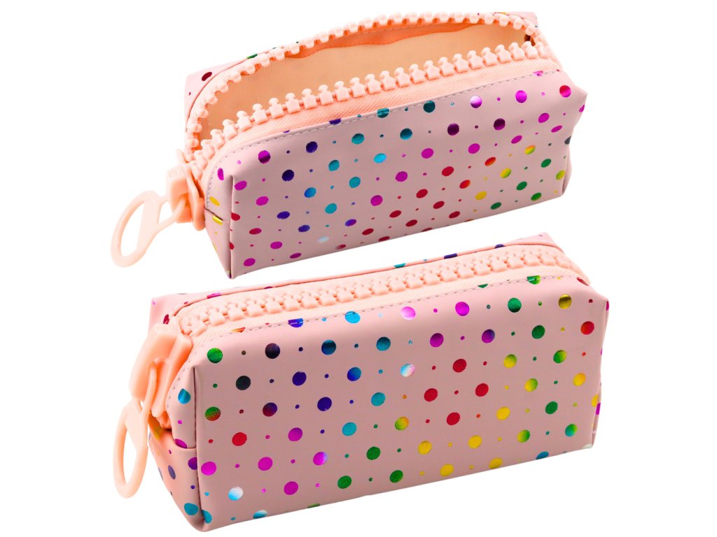 - 1x školní penál s barevnými puntíky a velkým zipem