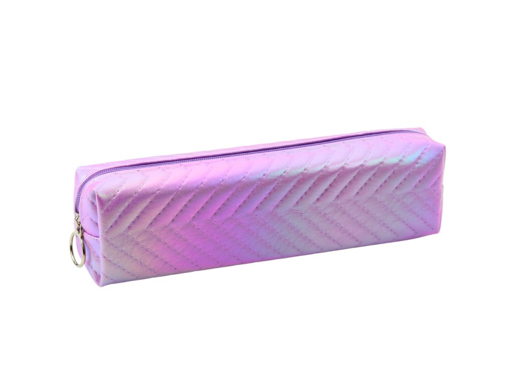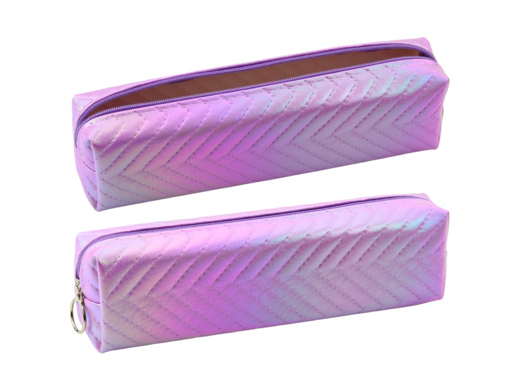 Školní penál Organizér Holografický rybí vzor Fialový 21x6cm