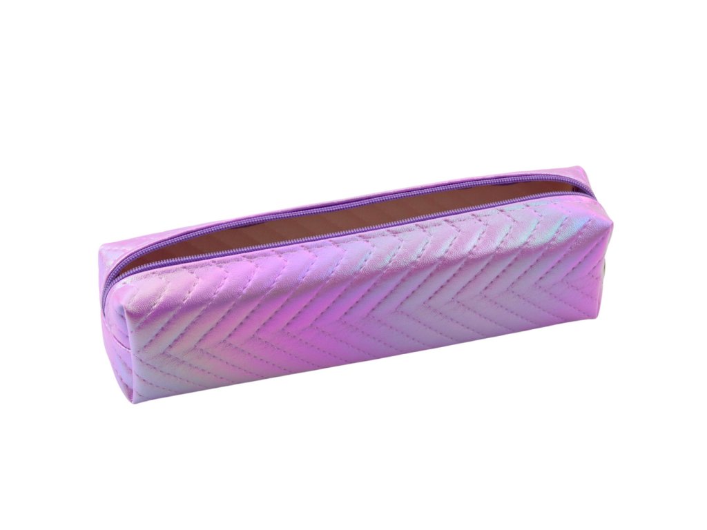 Holografický růžový školní penál s jemným vzorem rybí kosti je dokonalou kombinací stylu a funkčnosti. Jeho lesklý povrch jemně odráží světlo a vytváří efektní, duhový lesk, který přitahuje pozornost a vyniká na pozadí klasických penálů. Embosovaný vzor rybí kosti dodává eleganci a klasický zip zajišťuje pohodlné používání.