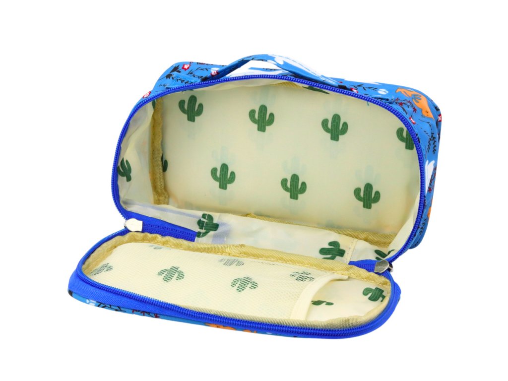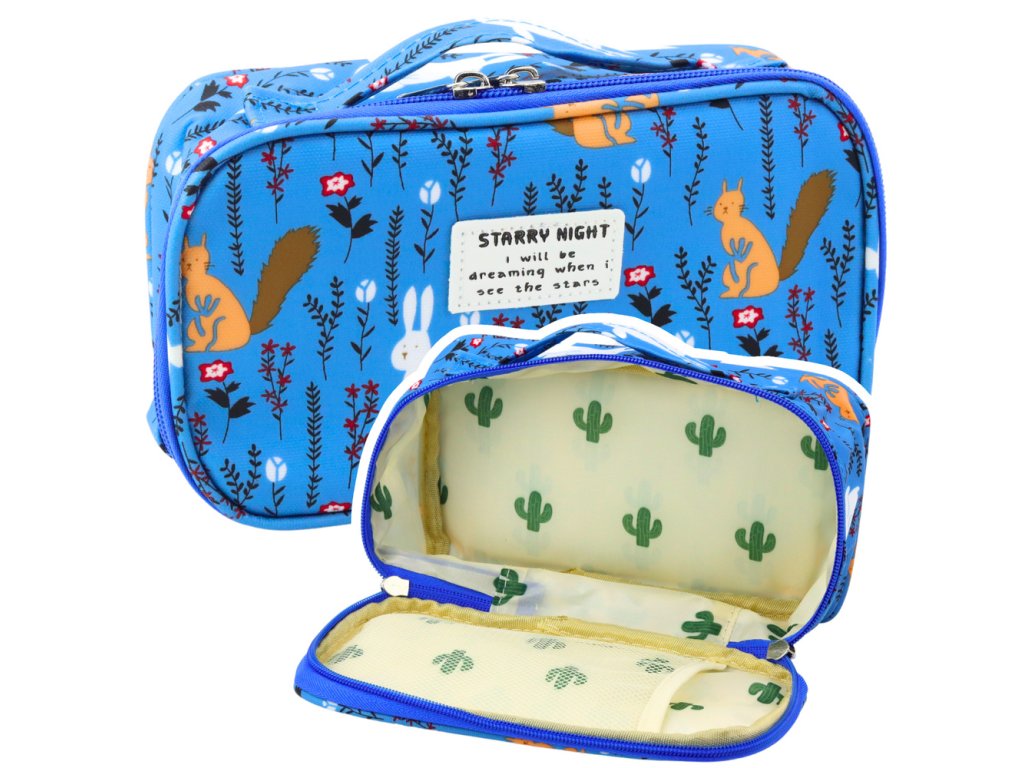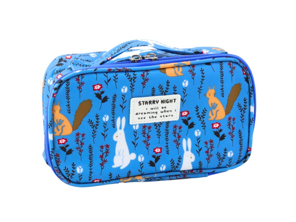 Školní penál organizér kosmetická taška přídavná kapsa modrý 22,5 cm