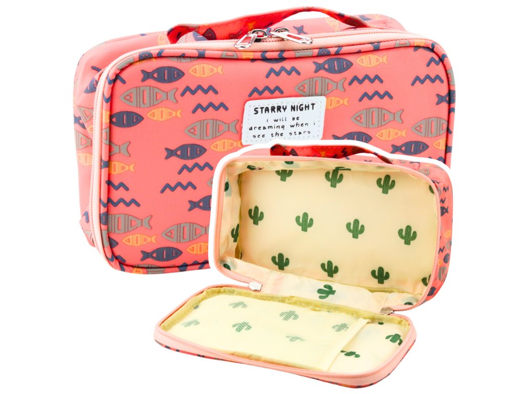 Školní penál Organizér Prostorný Přídavná kapsa Ryby Růžový 21.5cm