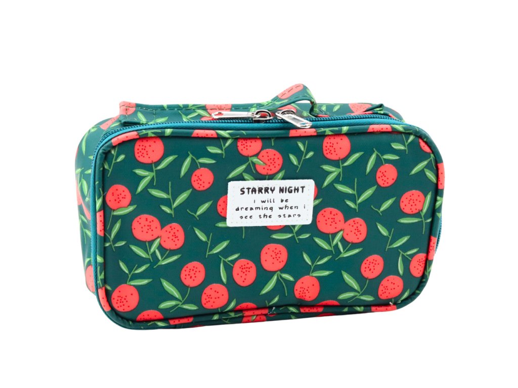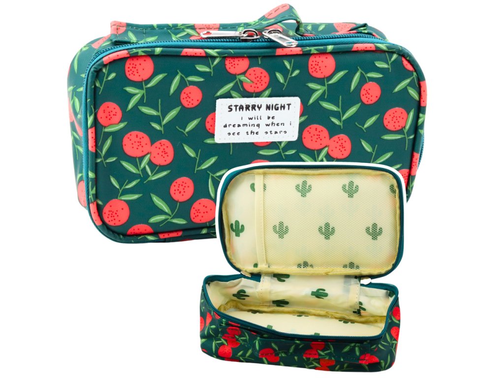Školní penál Organizér Prostorný Přídavná kapsa Třešně Zelený 21.5cm