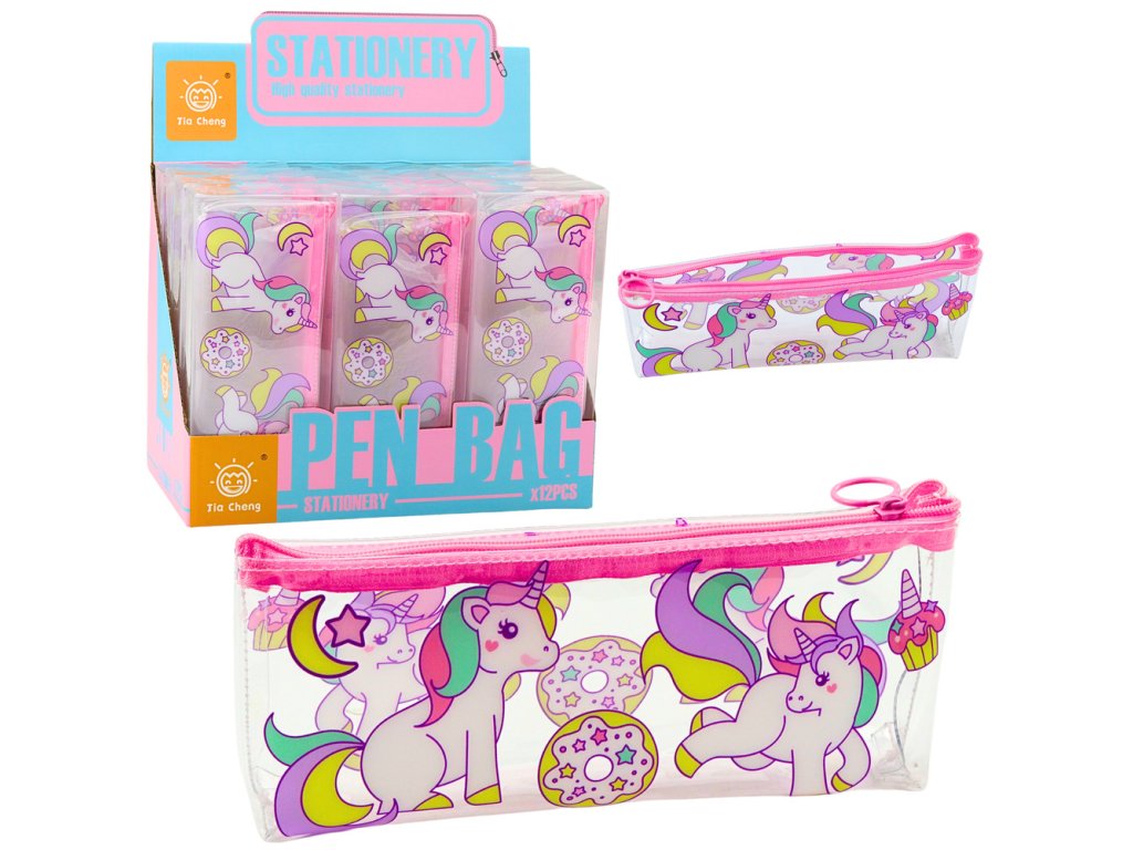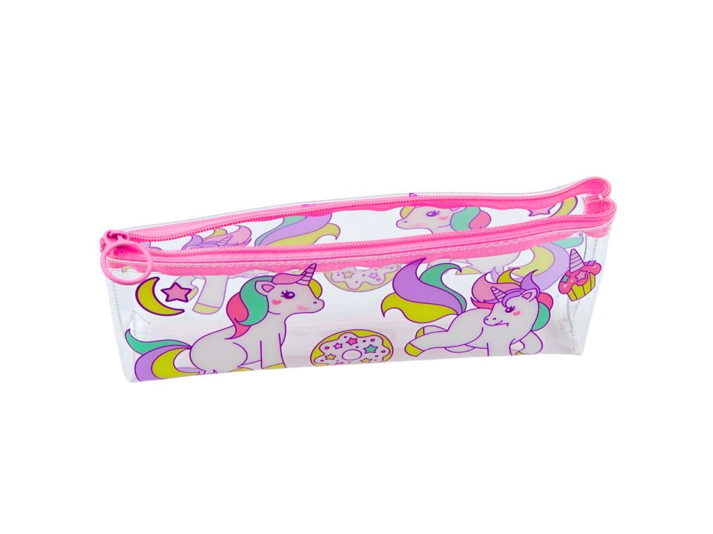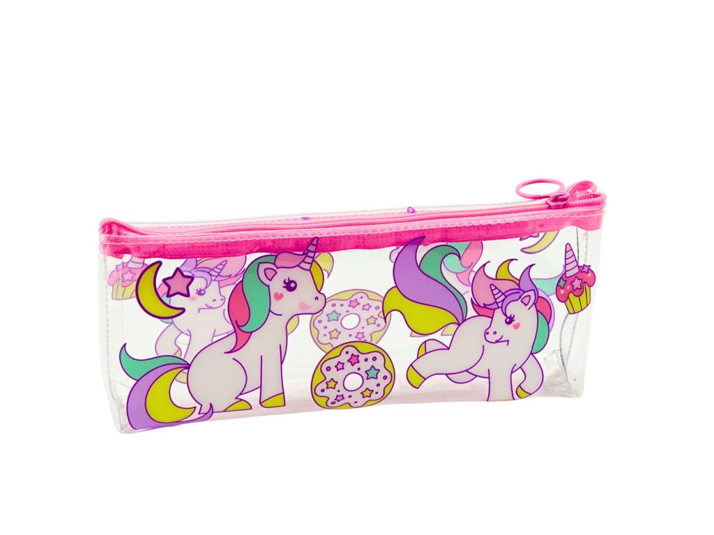 Školní penál transparentní donut jednorožci 20 x 8,5 x 4 cm