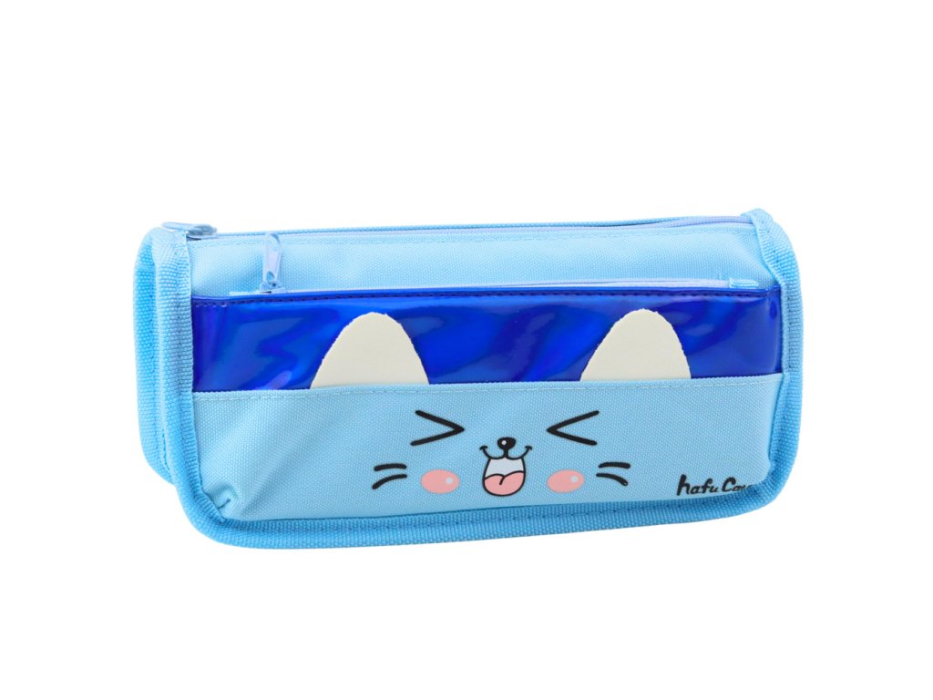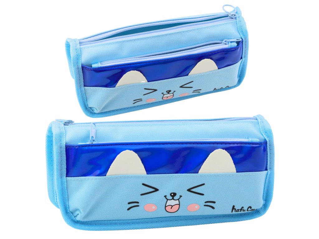 Školní Pouzdro Dvě Kapsy Motiv Kočka Modré 22cm