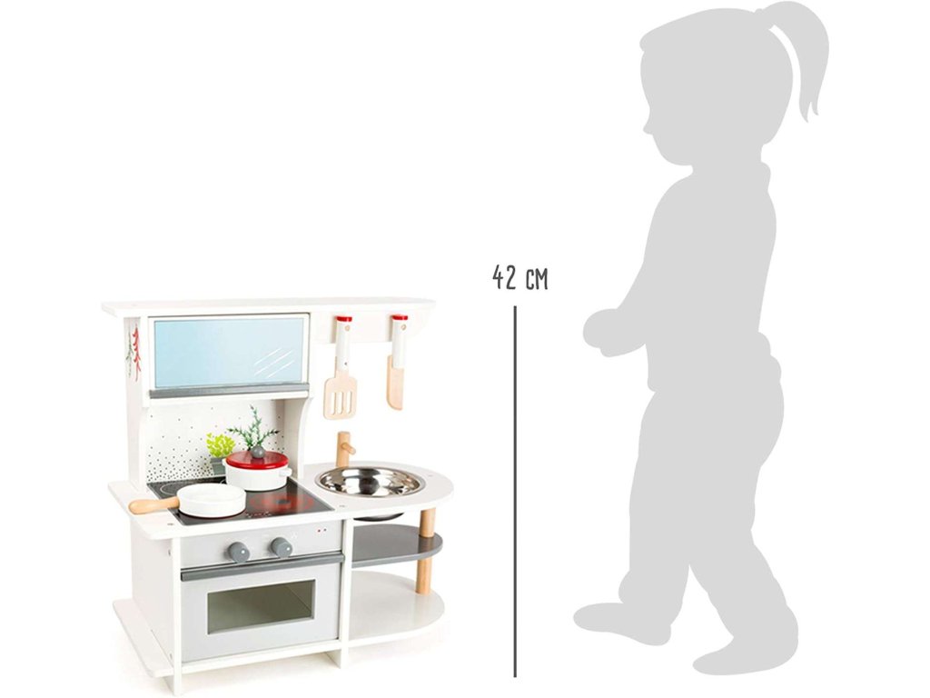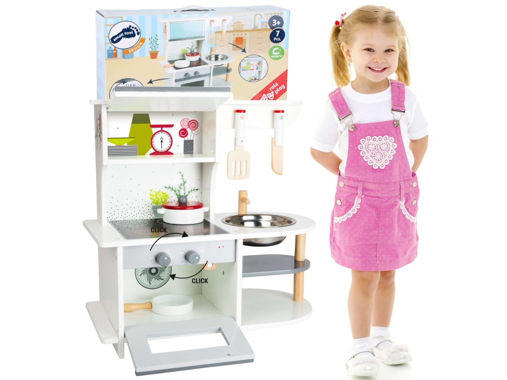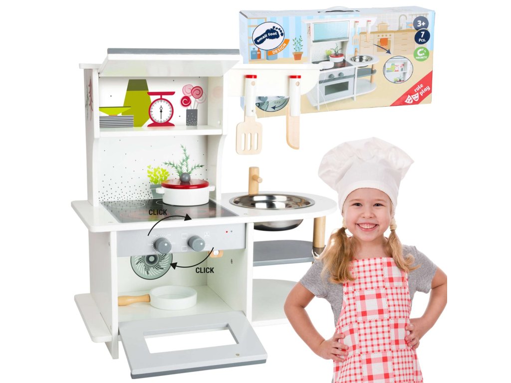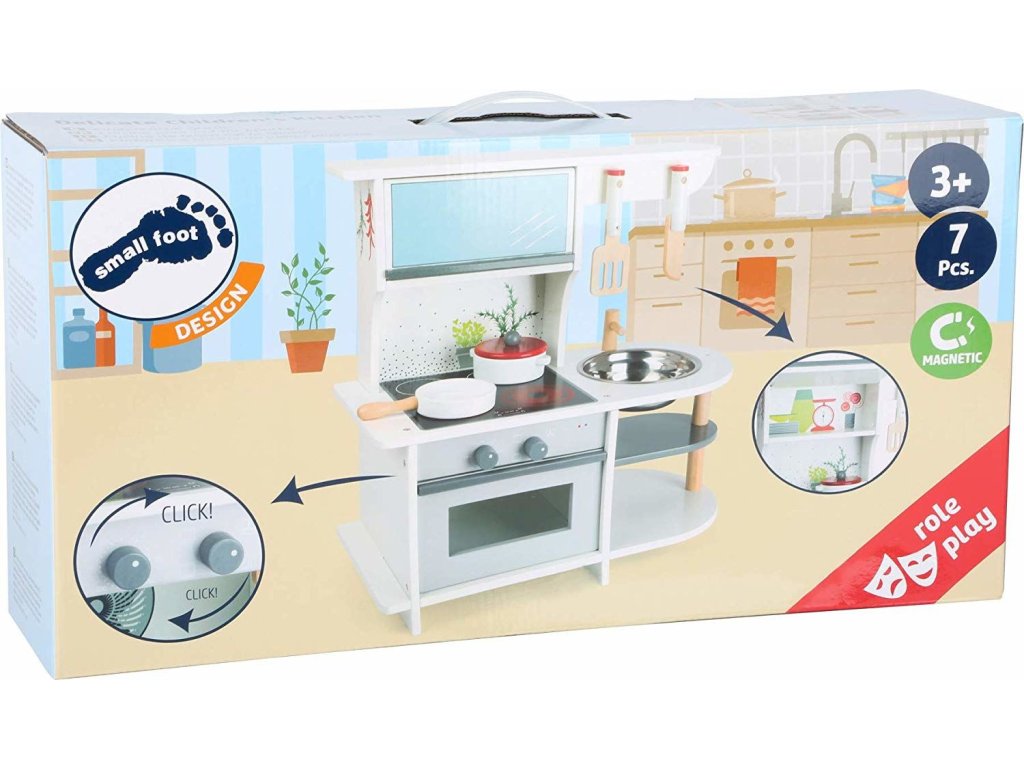 Vytvořil Small Foot značka německé společnosti Legler, která se již téměř 30 let zabývá navrhováním a výrobou hraček pro děti. Hlavními prvky sady jsou sporák, dřez, indukční varná deska, skříňka na nádobí. Celá souprava se skládá výhradně ze dřeva. Jednotlivé díly jsou navíc zdobeny grafikou, na které jsou mimo jiné vyobrazeny květiny a nádobí.