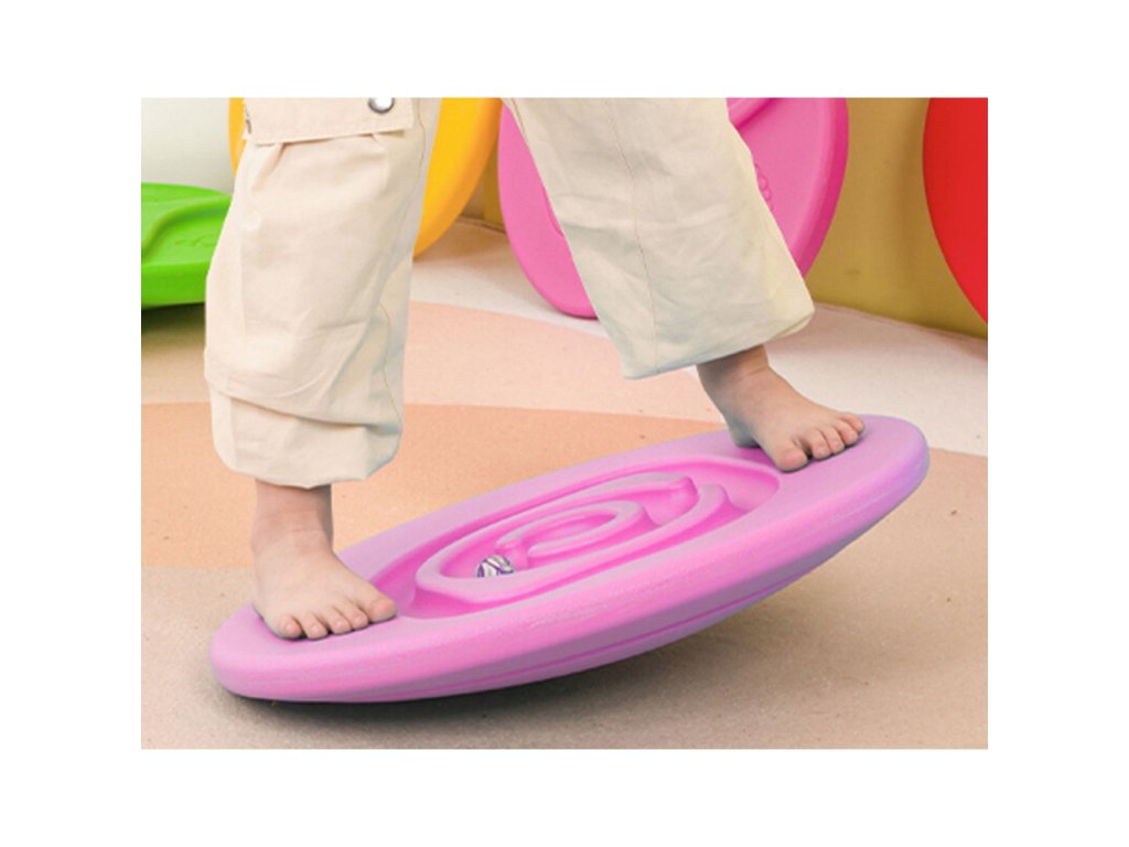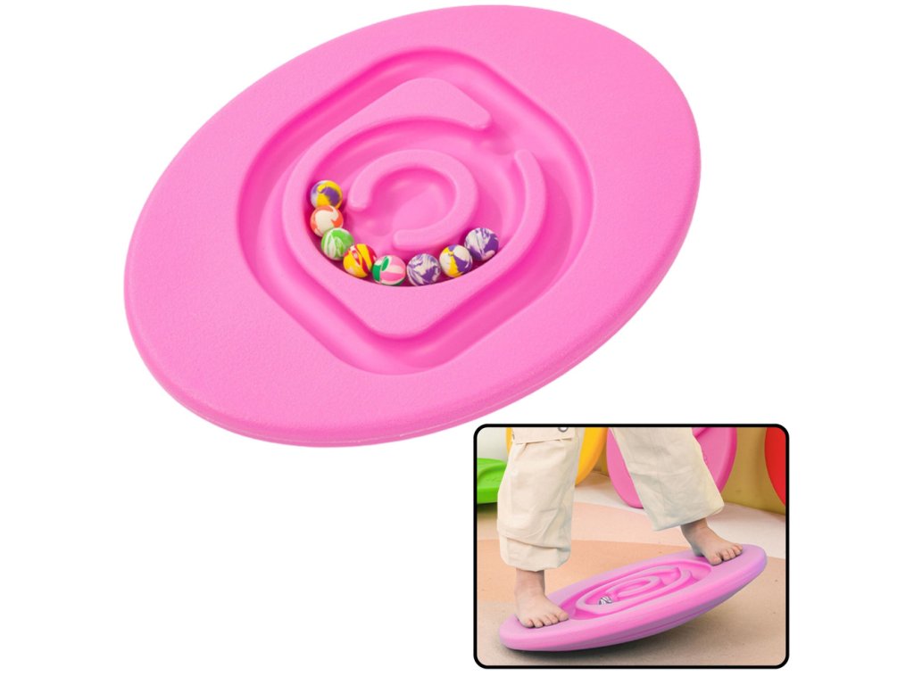 Růžová balanční deska je vynikající vzdělávací hračka podporující rozvoj hrubé motoriky, smyslovou integraci a pohybovou koordinaci dítěte. Díky spirálové dráze a 5 barevným gumovým míčkům mohou batolata trénovat rovnováhu a přesnost pohybem míčků pomocí jemného balancování celým tělem.