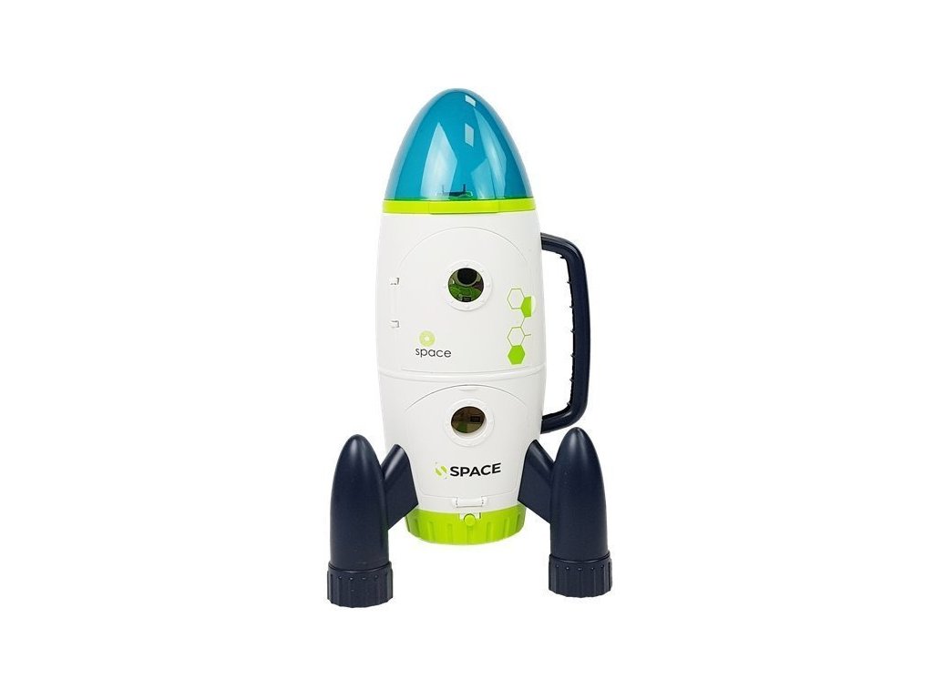 Rozměrná raketa – vesmírná stanice je pro astronoma jako druhý domov a řídící stanice. Po otevření dveří se nám objeví jeho vnitřek, snadno se vejde figurka astronoma i malé vesmírné autíčko. V horní části má astronom své velitelské centrum, pohodlné křeslo, ve kterém může pozorovat jevy za zemí. Posuvník na zadní straně zvedá a spouští postavu astronoma uvnitř. Ústa rakety je otevíratelná a průhledná. Ze spodní místnosti můžete v malém vesmírném voze vyrazit obdivovat a prozkoumávat vesmír. Na boku je madlo, stačí ho uchopit a vaše dítě může létat do nebes. Samozřejmostí je i zvuková a světelná funkce. Po stisknutí tlačítka začne odpočítávání do vzletu a ze spodní části rakety se rozsvítí červené světlo.