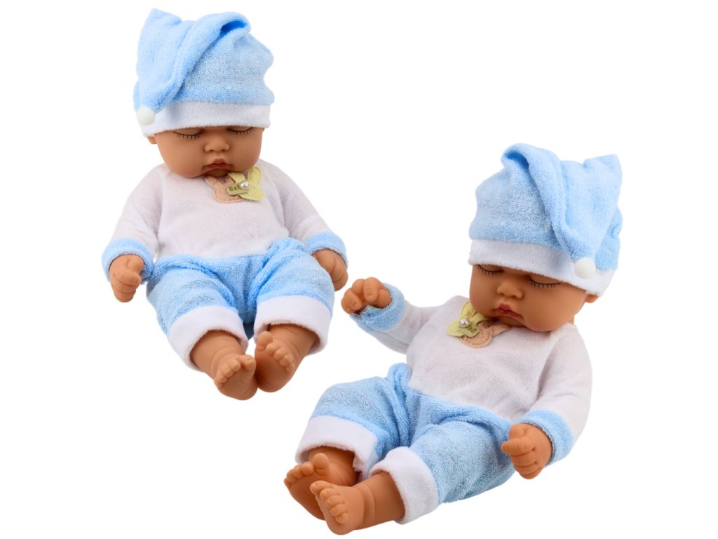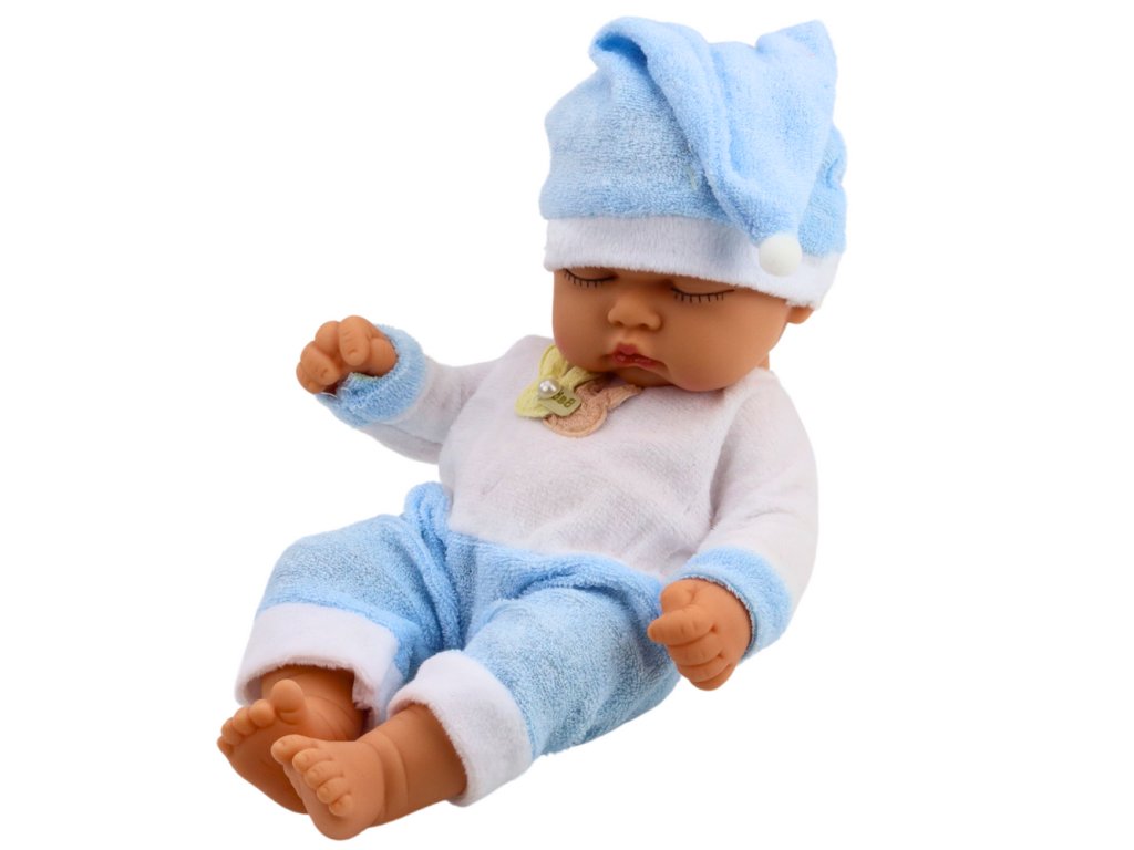 Panenka v modrém pyžamu a čepici je okouzlující a neuvěřitelně realistická hračka vytvořená s ohledem na děti od 3 let. Její zavřené oči, klidná mimika a jemné, pečlivě reprodukované rysy obličeje způsobují, že panenka vypadá jako spící miminko – připravené k objetí, houpání nebo uspání. Je to skvělá kamarádka, která v sobě probouzí přirozenou péči a ochranitelské city.