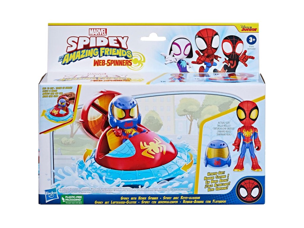 Spidey & Super Buddies Webspinner Spidey & Hover Spinner F7252Spidey & Super Buddies Web-Spinners je unikátní série akčních figurek s tryskami. Zkuste pomoci, když je to potřeba! Figurka Spidey v pavoučím obleku a helmě je připravena na dobrodružství! Nasaď svého superhrdinu do auta a vydej se na misi!: Vozidlo Hover Spinner má povrch inspirovaný postavami, takže děti mohou předstírat, že jsou jejich oblíbeným hrdinou Spider-Mana.