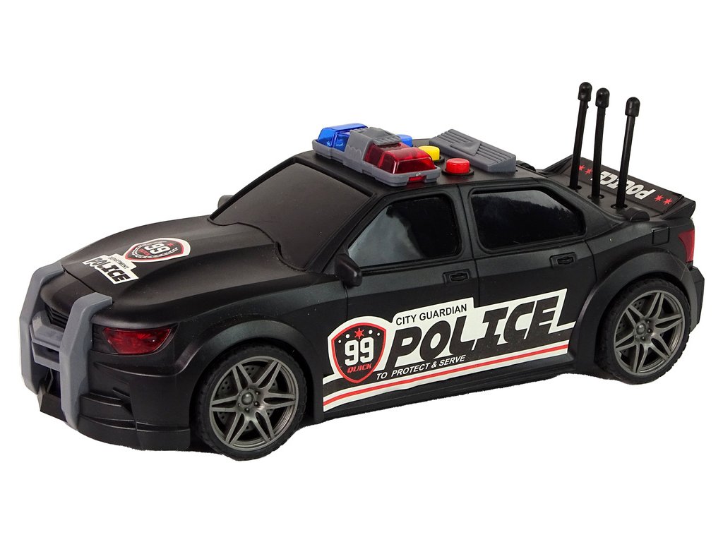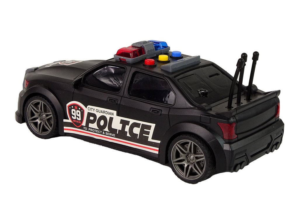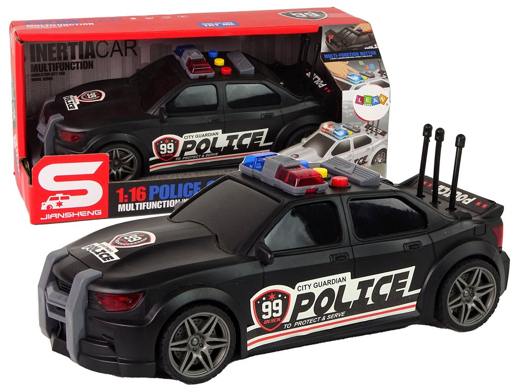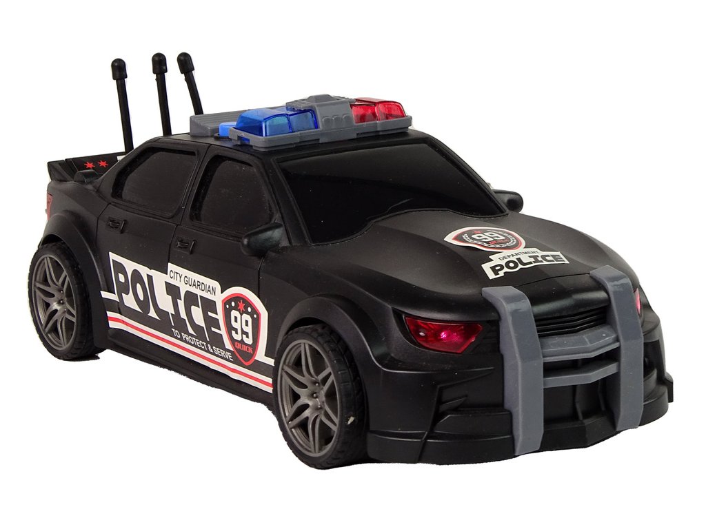 Pokud má vaše dítě rádo hudbu a sportovní auta, máme ideální kombinaci. Bude to pro něj velká zábava a určitě se rychle neomrzí. Zveme vás do světa nezapomenutelných dobrodružství za volantem našeho úžasného auta v měřítku 1:16, v černé barvě, zdobené policejními nálepkami!