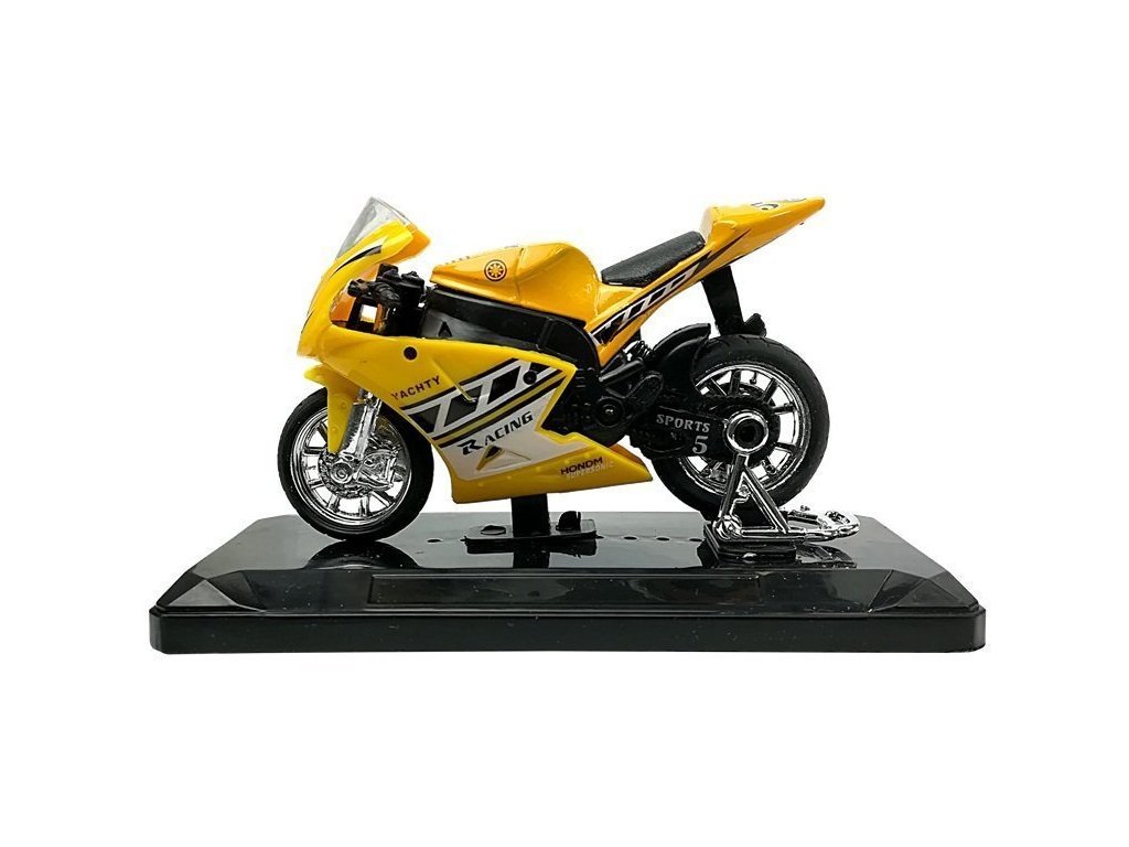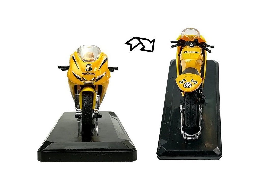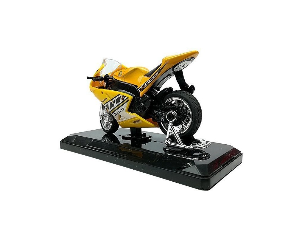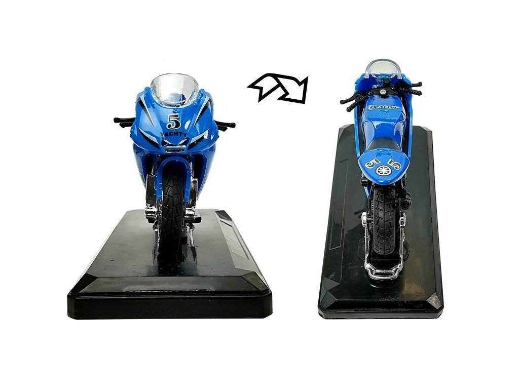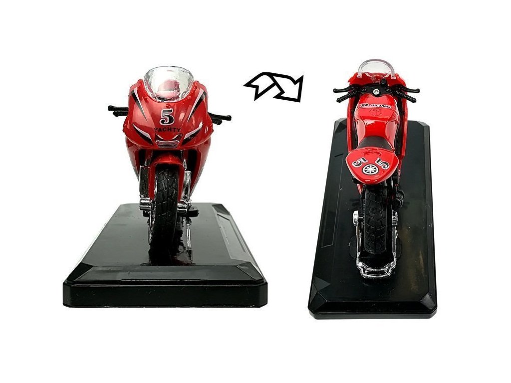 Malá vozidla jsou nejoblíbenější hračkou chlapců všech věkových kategorií. Používají se především pro zábavu a sběratelství. Náš motocykl je vyroben z odolného materiálu v měřítku 1:18. Model má funkci vydávání zvukových signálů připojením k zadní části motocyklu a pohyblivému volantu. Nosné vozidlo je založeno na základně, kterou lze na modelu kdykoli cítit. Velkou předností motorky je její prvotřídní zpracování, které spočívá v zohlednění těch nejmenších detailů, díky čemuž padne do oka každému klukovi. Náš model má funkci uvádění do pohybu. Stačí hračku zatáhnout na zem dozadu a ona se rozjede.