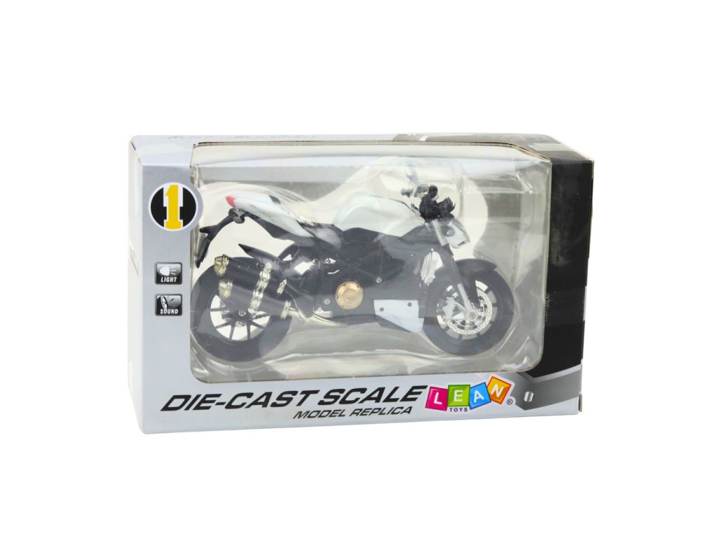 Sportovní motorka kovová světla zvuky bílá 1:12