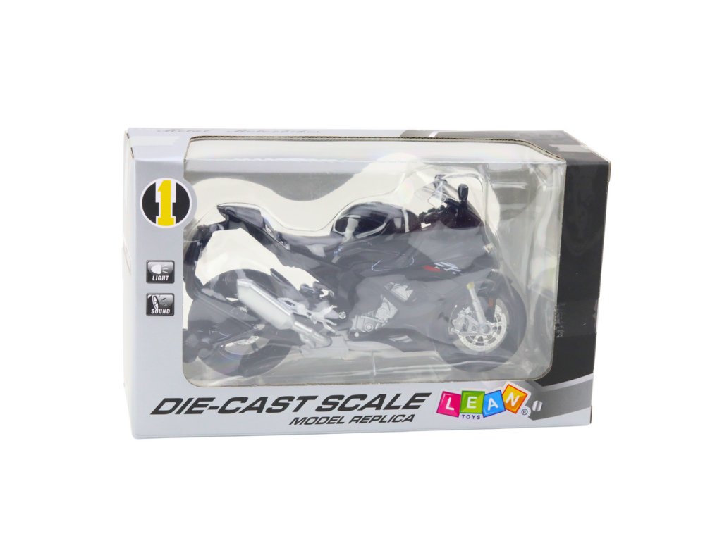 Sportovní motorka kovová světla zvuky černá S1000 1:12